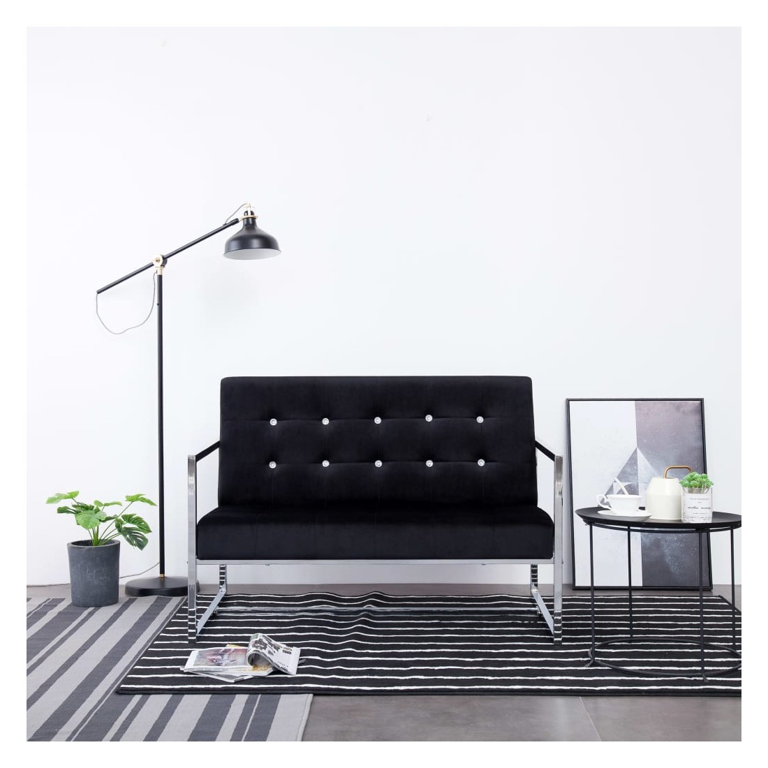 Ce canapé à 2 places sera un endroit idéal pour bavarder, lire, regarder la télévision ou simplement vous détendre. Matériau durable : grâce à son cadre en bois massif et à ses pieds chromés de haute qualité, le banc est très stable et durable. Expérience d’assise confortable : la causeuse est recouverte de velours résistant et rembourrée de mousse souple pour plus de confort. Design élégant : doté d'un design à la fois concis et moderne, le fauteuil s'intégrera parfaitement dans n'importe quel salon.