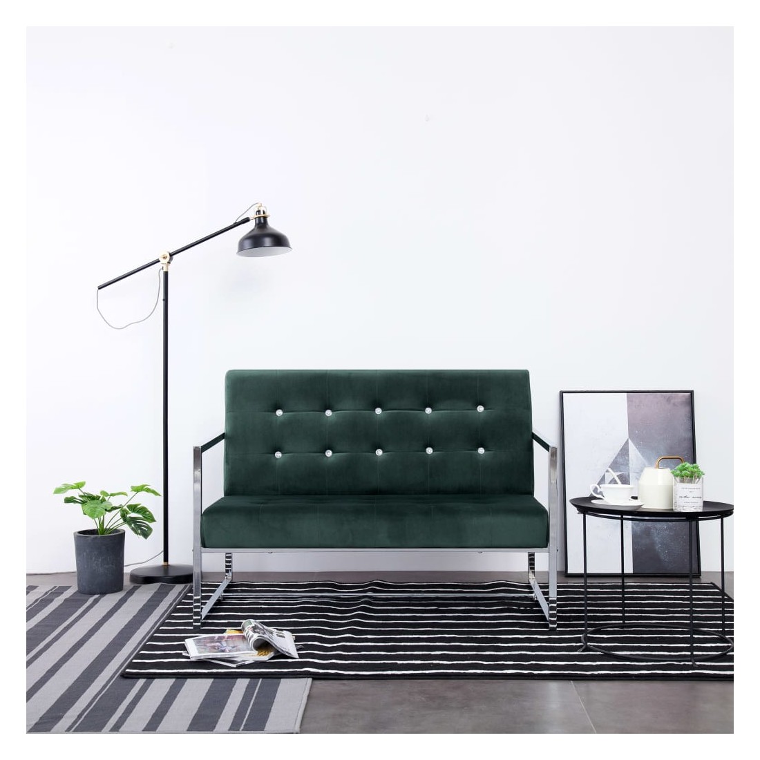 Ce canapé à 2 places sera un endroit idéal pour bavarder, lire, regarder la télévision ou simplement vous détendre. Doté d'un design à la fois concis et moderne, le fauteuil s'intégrera parfaitement dans n'importe quel salon. La causeuse est revêtue d'un tissu résistant et rembourré de mousse douce pour plus de confort. Grâce à son cadre en bois massif et à ses pieds en acier de haute qualité, le banc est très stable et durable. Le canapé à 2 places est facile à assembler.