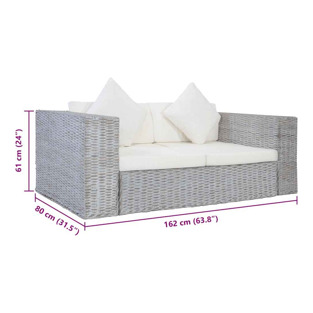 Ce canapé en rotin associe style et fonctionnalité et sera un excellent ajout à votre maison. Matériau durable : grâce au véritable matériau de rotin kubu, le canapé est facile à nettoyer, résistant à l'usure et adapté à une utilisation quotidienne. Cadre en bois : il est doté d'un cadre en bois robuste, très durable et stable. Expérience d’assise confortable : les coussins d'assise et de dossier épais ainsi que les oreillers sont très confortables. En outre, les accoudoirs larges s'ajoutent au confort de votre siège. Housse amovible et lavable : ces coussins de siège sont dotés de housses amovibles pour un lavage et un entretien faciles.