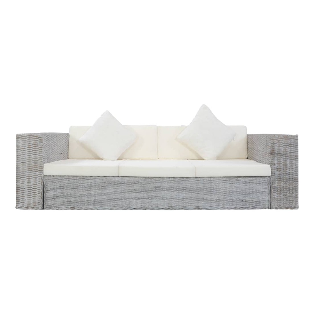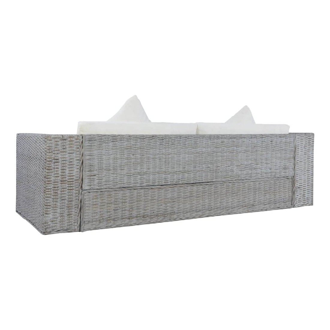 Ce canapé en rotin à 3 places, élégant et très confortable, avec coussins et oreillers épaississement rembourrés, sera le point central de votre salon. Matériau durable : grâce au véritable matériau de rotin kubu, le canapé est facile à nettoyer, résistant à l'usure et adapté à une utilisation quotidienne.Cadre robuste et stable : il dispose d'un cadre en bois robuste, très durable et stable.Expérience d’assise confortable : les coussins épais de dossier et de siège sont considérablement confortables et également lavables grâce à leurs housses amovibles. En outre, les accoudoirs larges s'ajoutent au confort de votre siège.