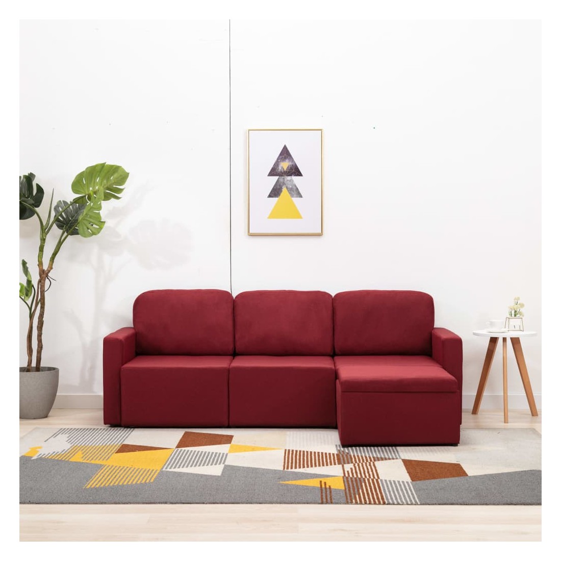 Canapé-lit modulaire 3 places Rouge bordeaux Tissu