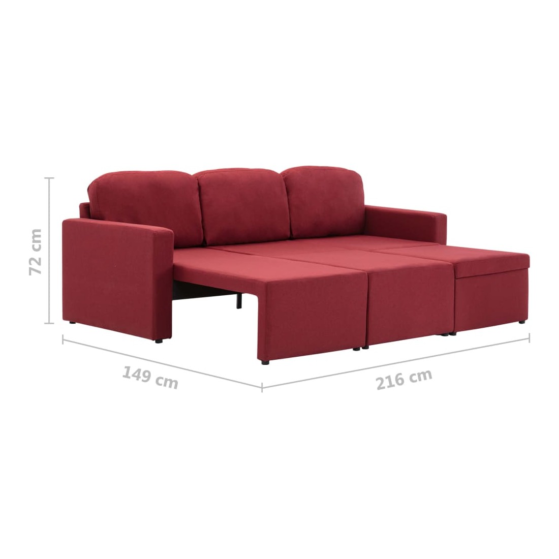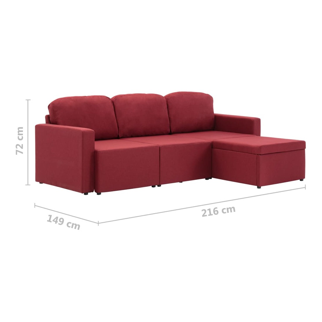 - Dimensions totales : 216 x 149 x 72 cm (l x P x H)