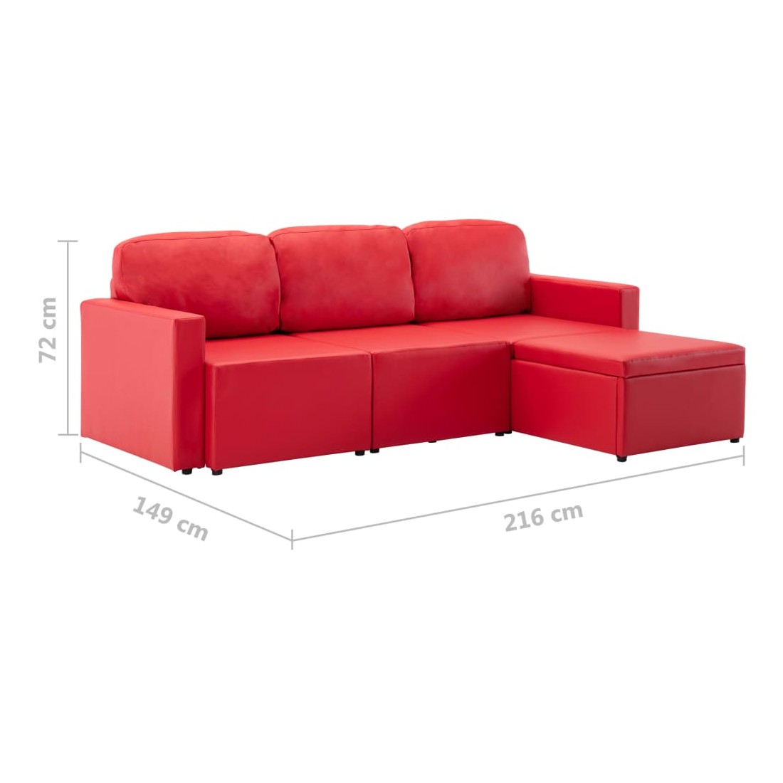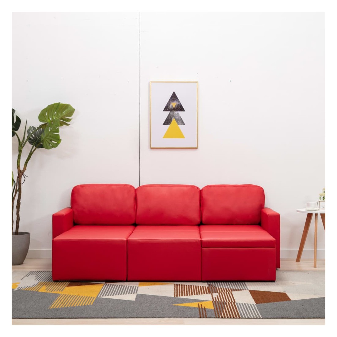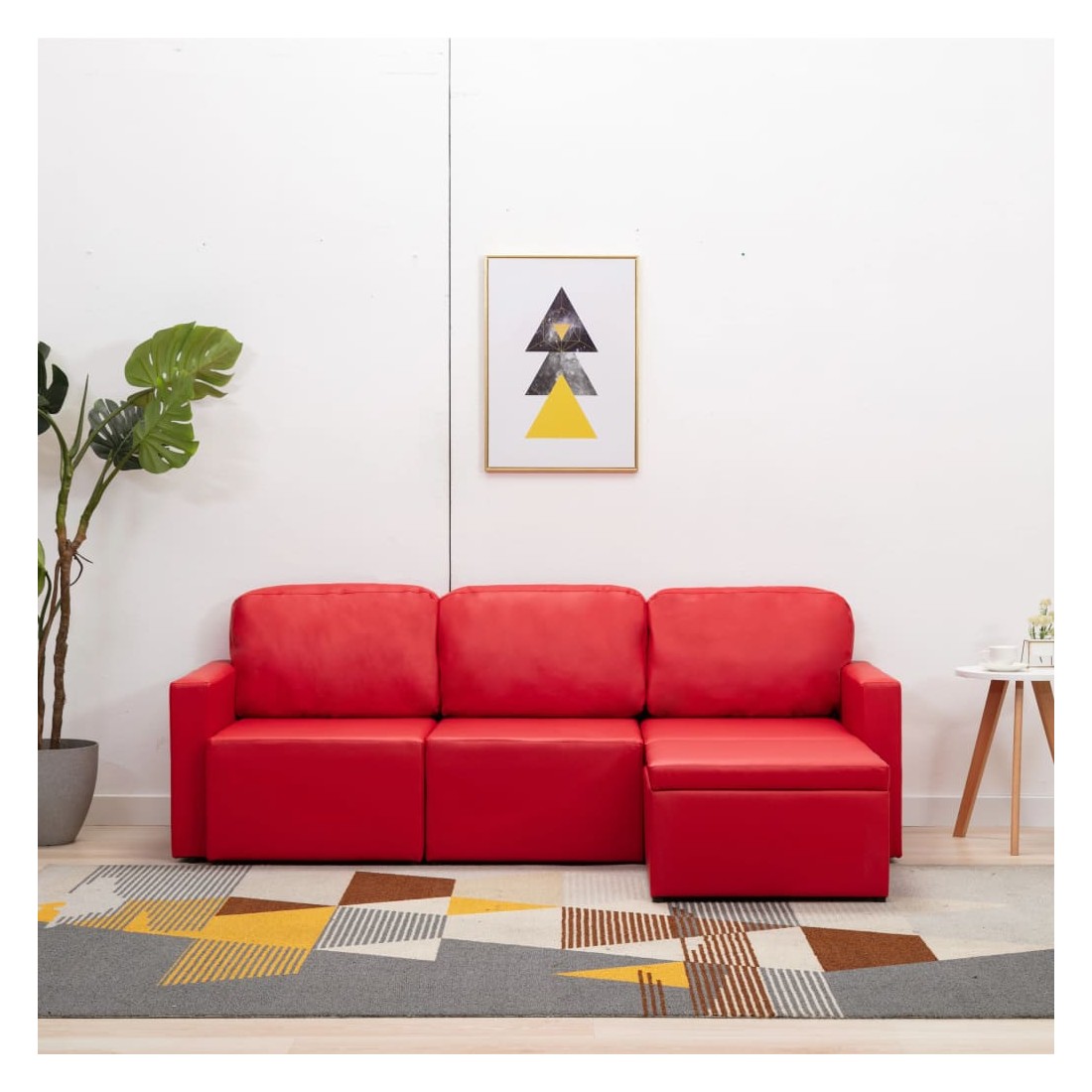 Canapé-lit modulaire 3 places Rouge Similicuir