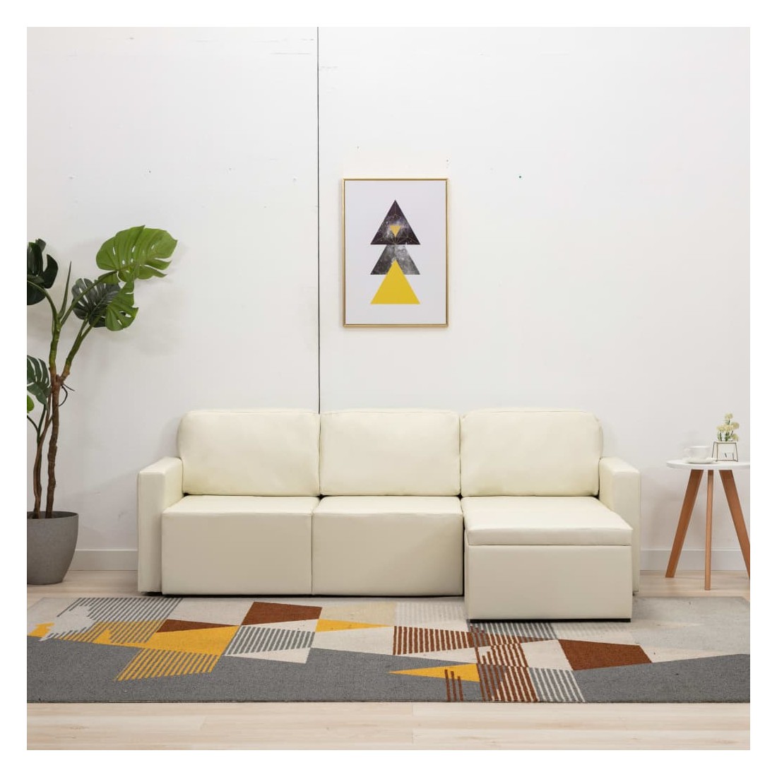Canapé-lit modulaire 3 places Crème Similicuir