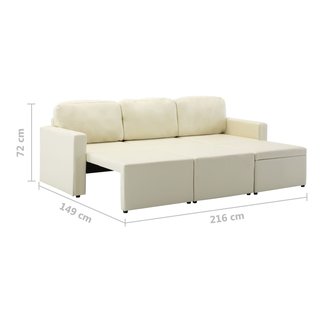 - Dimensions totales : 216 x 149 x 72 cm (l x P x H)