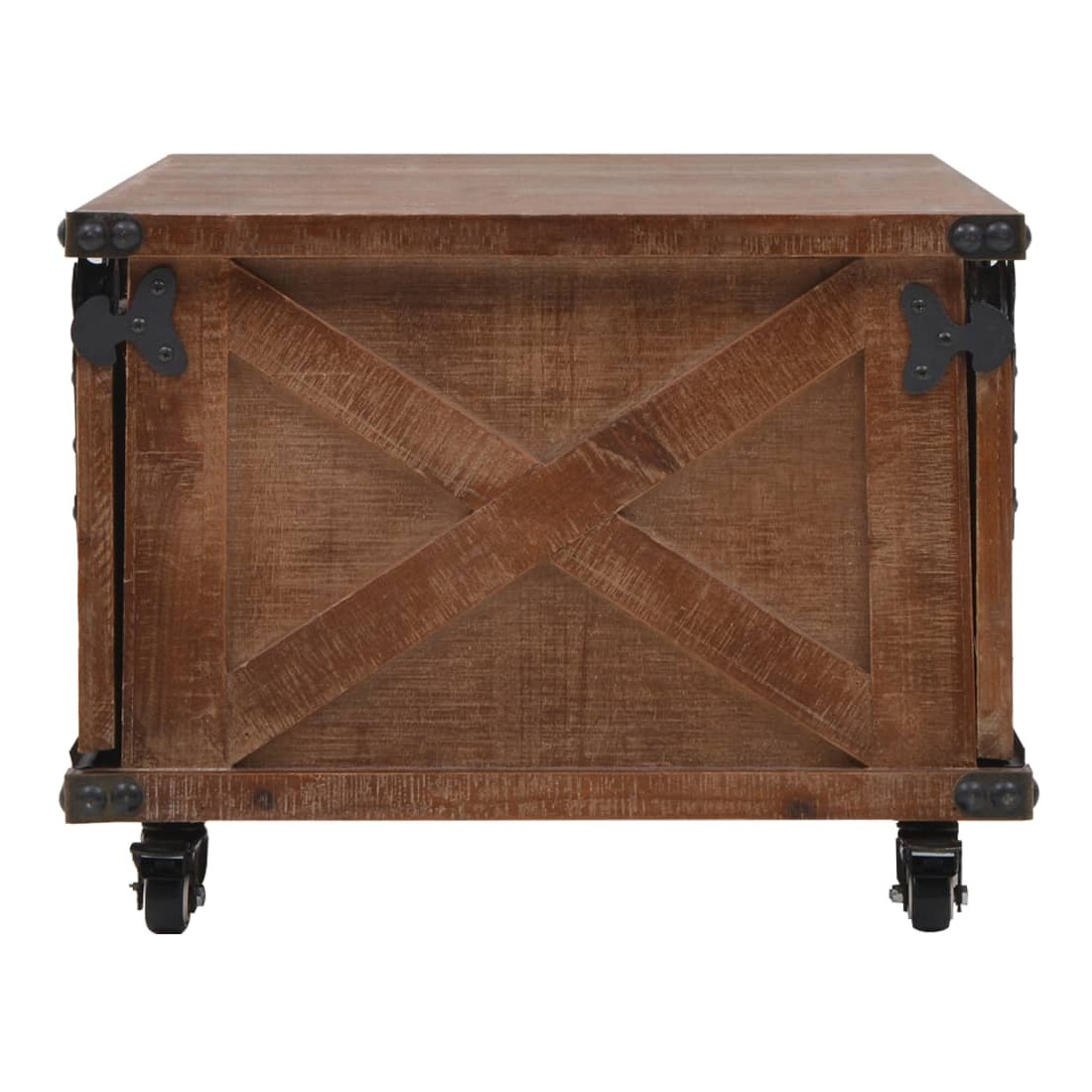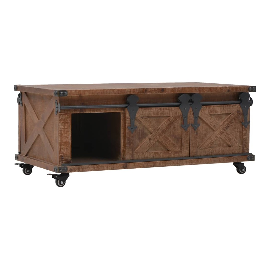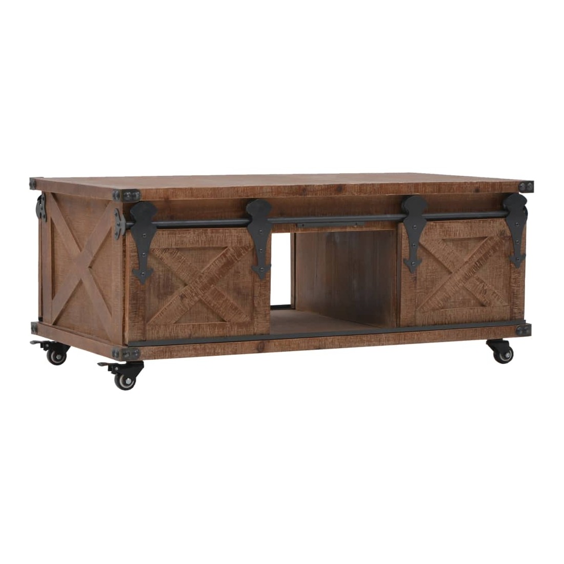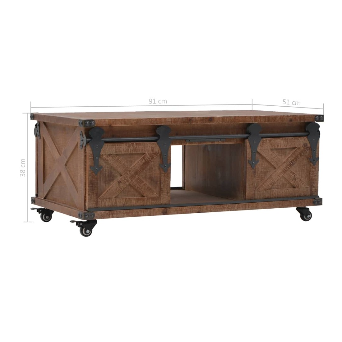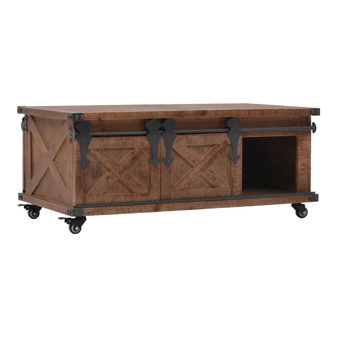 Cette table basse classique en bois sera un ajout décoratif à votre salle de séjour. Elle peut également être utilisée comme table d'appoint, table de canapé ou table de salon. Cette table d'appoint très stable et durable est fabriquée en bois de sapin massif, qui dégage un charme vintage et qui lui donne ses caractéristiques rustiques. Le dessus de table robuste est idéal pour placer des paniers de fruits, des vases ou d'autres objets décoratifs. La table basse offre suffisamment d’espace pour bien ranger vos divers objets. La conception unique à rails coulissants facilite l'ouverture et la fermeture de la porte et contribue au style vintage et industriel de la table. La table est conçue avec quatre roulettes flexibles pour la déplacer dans la maison. Cette table basse est facile à assembler.