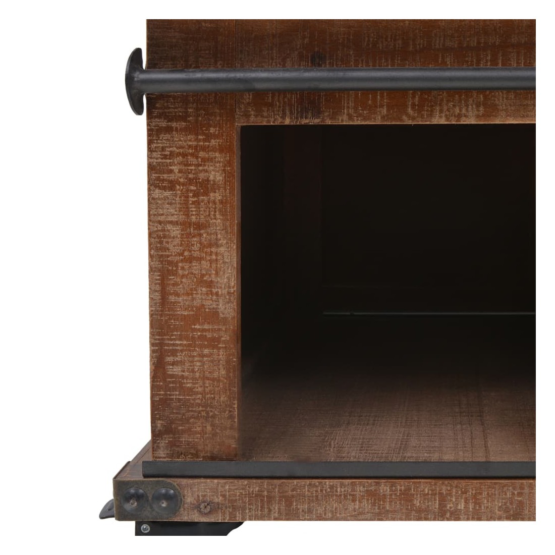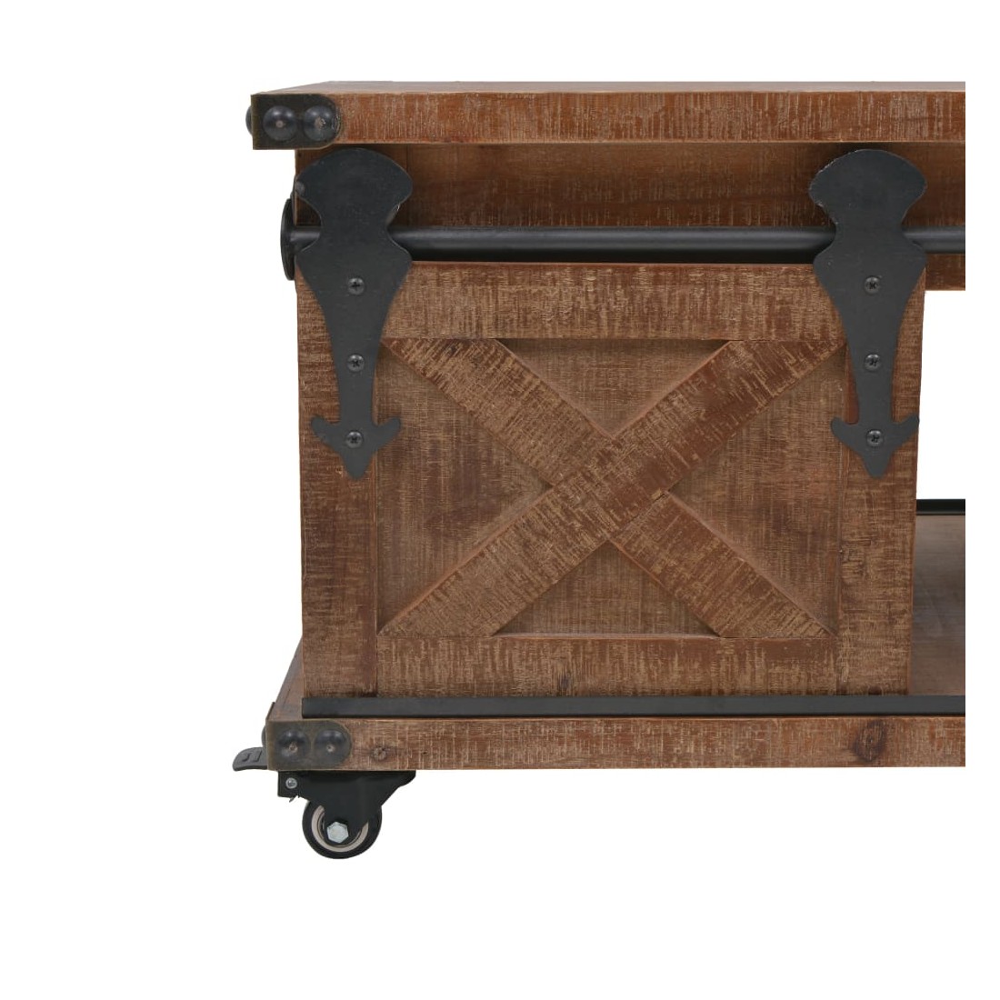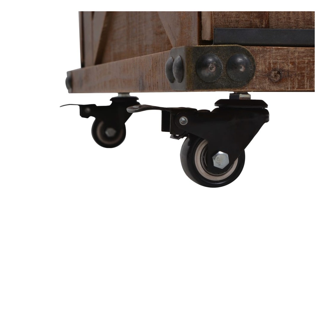 Cette table basse classique en bois sera un ajout décoratif à votre salle de séjour. Elle peut également être utilisée comme table d'appoint, table de canapé ou table de salon. Cette table d'appoint très stable et durable est fabriquée en bois de sapin massif, qui dégage un charme vintage et qui lui donne ses caractéristiques rustiques. Le dessus de table robuste est idéal pour placer des paniers de fruits, des vases ou d'autres objets décoratifs. La table basse offre suffisamment d’espace pour bien ranger vos divers objets. La conception unique à rails coulissants facilite l'ouverture et la fermeture de la porte et contribue au style vintage et industriel de la table. La table est conçue avec quatre roulettes flexibles pour la déplacer dans la maison. Cette table basse est facile à as