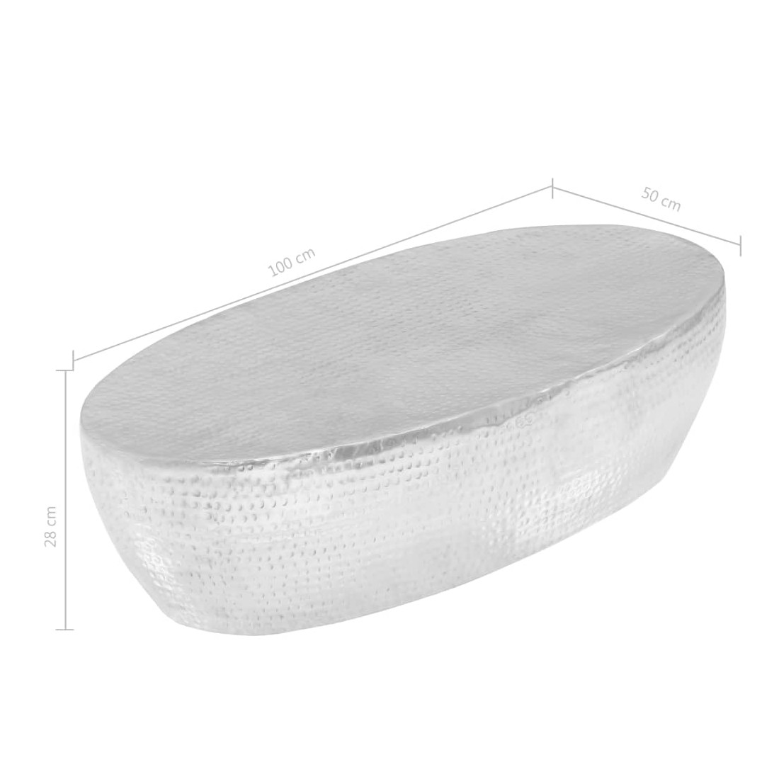 Cette table basse remarquable deviendra non seulement le point central de votre salon ou de votre bureau, mais viendront également compléter une variété de styles de mobilier. La table d'appoint est en aluminium poli pour plus de stabilité et de robustesse. De plus, la finition martelée attrayante ajoute une texture tactile à la table. Veuillez noter que l'article est déjà assemblé. Par conséquent, aucun assemblage n'est nécessaire. Ajoutez une touche de modernité à votre décoration intérieure avec notre table basse au design unique !