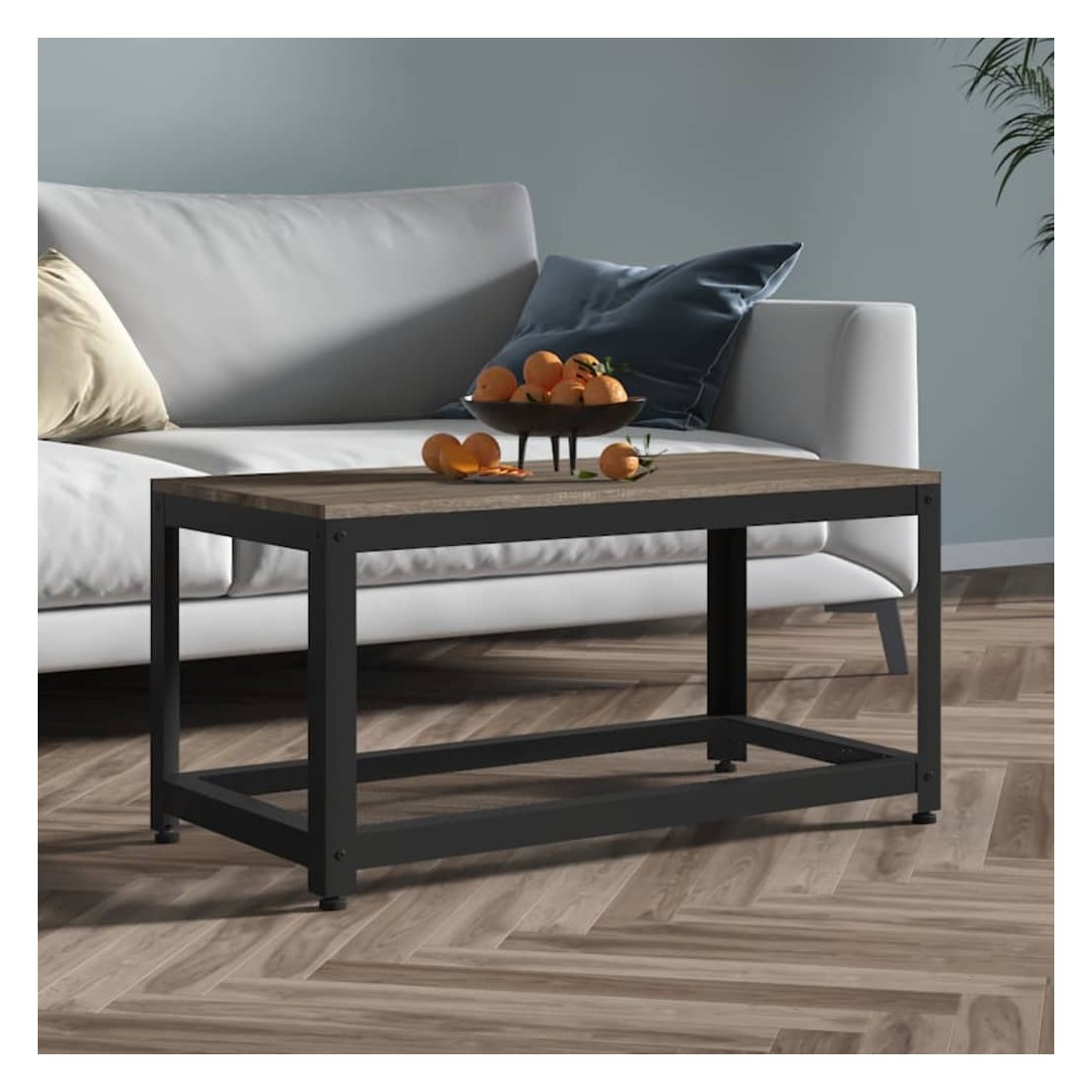 Table basse Gris et noir 90x45x45 cm MDF et fer