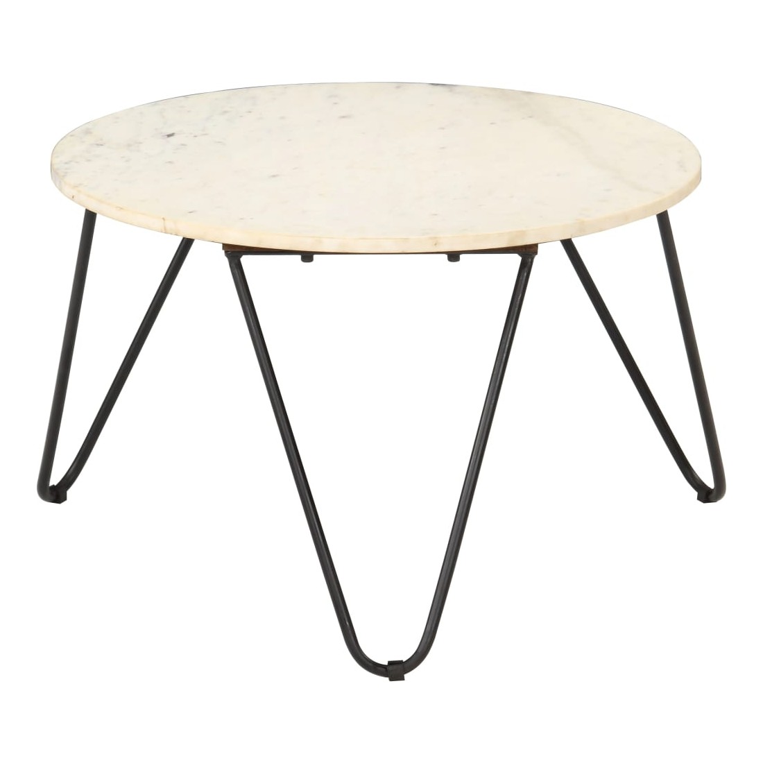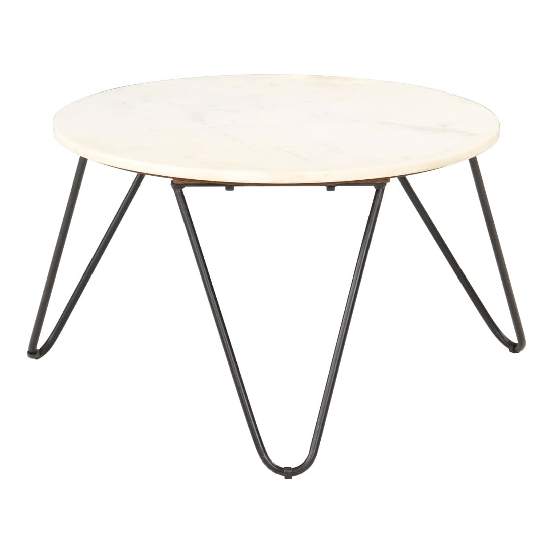 Notre table basse moderne et tendance convient à toute pièce de votre maison. Fabriquée en pierre véritable avec une texture de marbre et un cadre en fer solide avec une finition enduite de poudre, cette table est stable et durable. Elle offre une surface stable et sûre pour placer des boissons, des vases, des coupes de fruits et d'autres ornements. Cette table d'appoint est facile à nettoyer simplement avec un chiffon humide. Complétez la décoration de votre maison avec notre élégante table de canapé !
