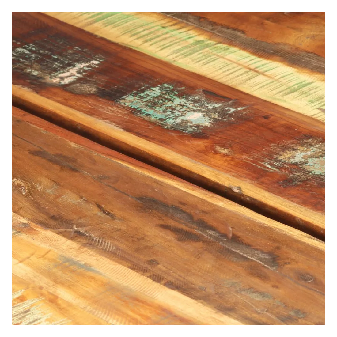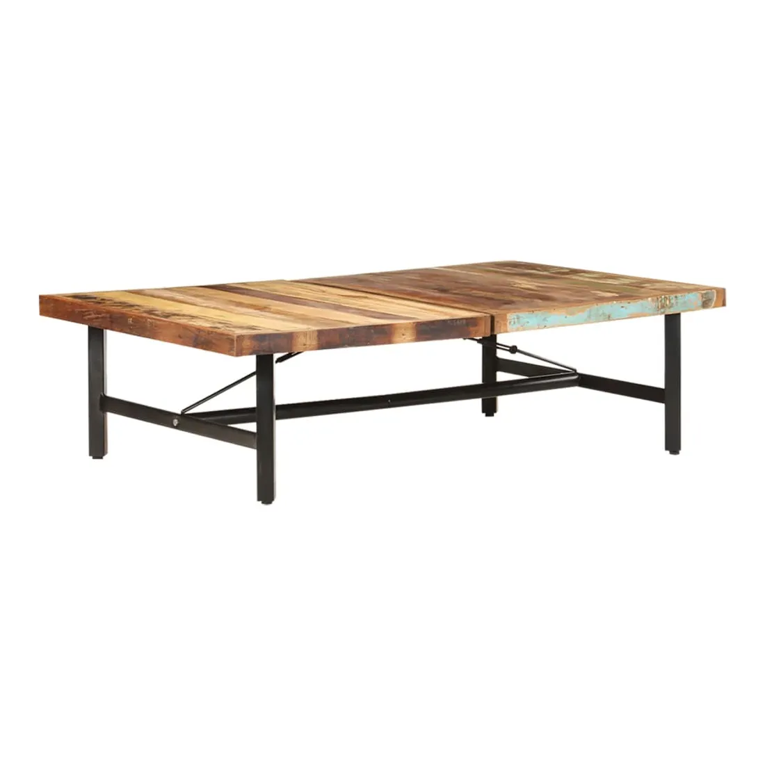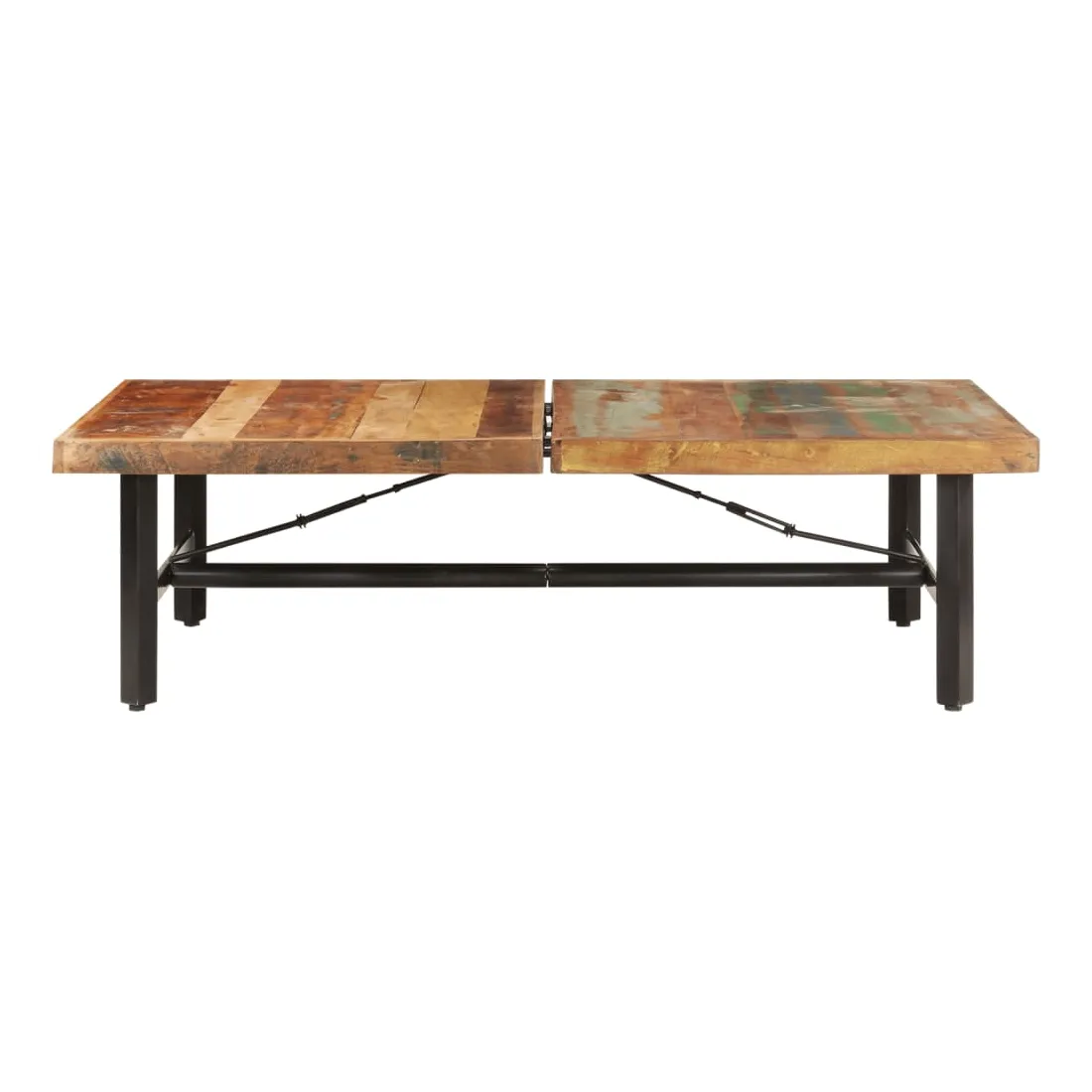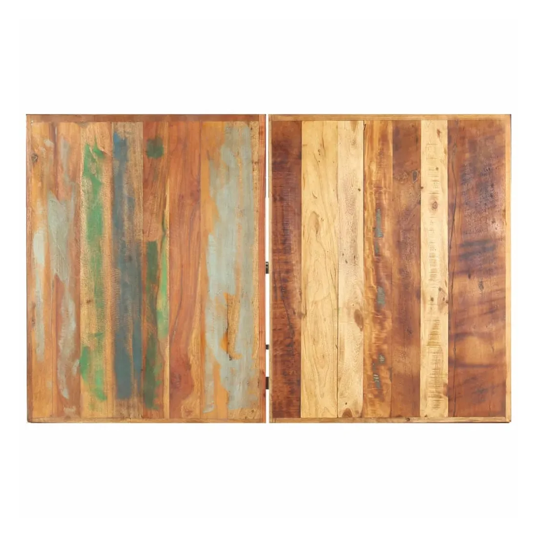 - Matériau : bois de récupération solide avec une finition de couleur mélangée, fer enduit de poudre