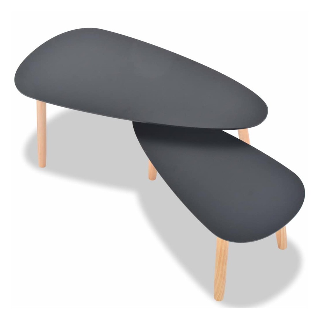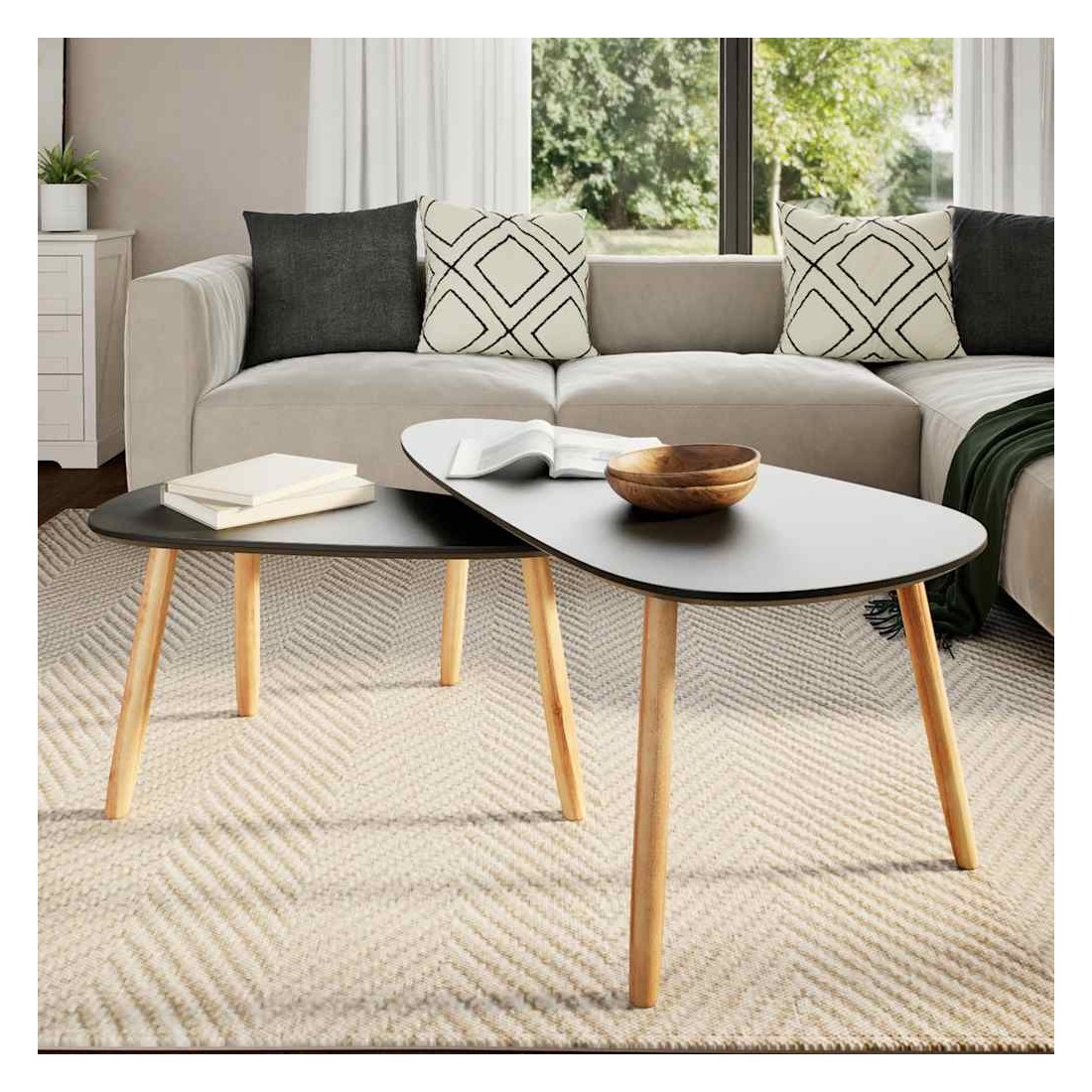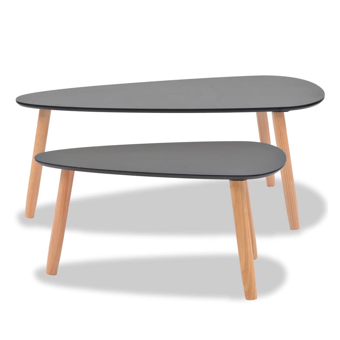 Ces tables basses en bois de haute qualité sont de charmants meubles de style scandinave. Elles seront un excellent ajout à votre salon ou à votre salle de séjour. Fabriqué en bois de pin massif, l'ensemble de tables d'appoint est solide et robuste. Les dessus de table robustes en MDF offrent une surface stable et sûre sur laquelle vous pouvez placer vos boissons, un panier de fruits, un vase ou d'autres articles décoratifs. Les tables peuvent également être utilisées comme tables de nuit, supports de plantes, supports de téléphone ou tables d'extrémité. Cet ensemble de tables est très polyvalent mais il n'occupe que peu d'espace. L'assemblage est facile. La livraison inclut deux tables basses.