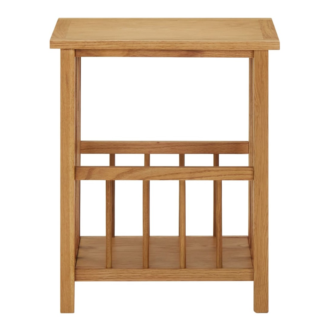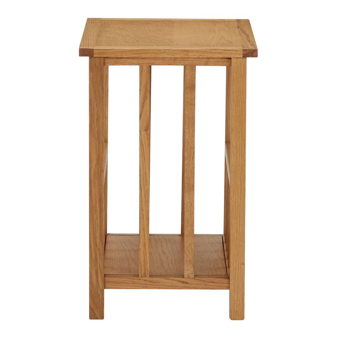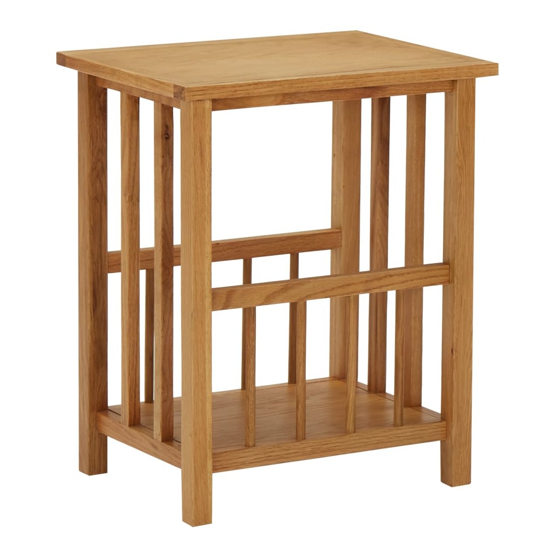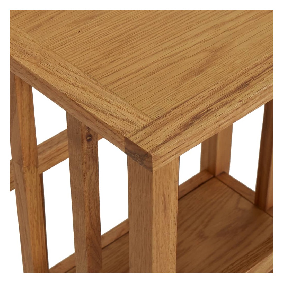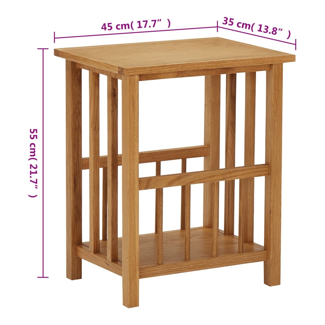 Notre table à revues présente un design simple mais élégant et ajoute une touche de charme rustique à votre décoration intérieure. Ce porte-revues a été savamment fabriqué à partir de bois de chêne massif et de MDF, ce qui le rend durable et fonctionnel. Grâce à son design compact, la table prend très peu de place et est facile à déplacer. Le dessus de table robuste est idéal pour afficher des objets décoratifs, des cadres photo ou des plantes en pot. Elle comprend également 1 étagère, ce qui est parfaite pour ranger les journaux et les revues.