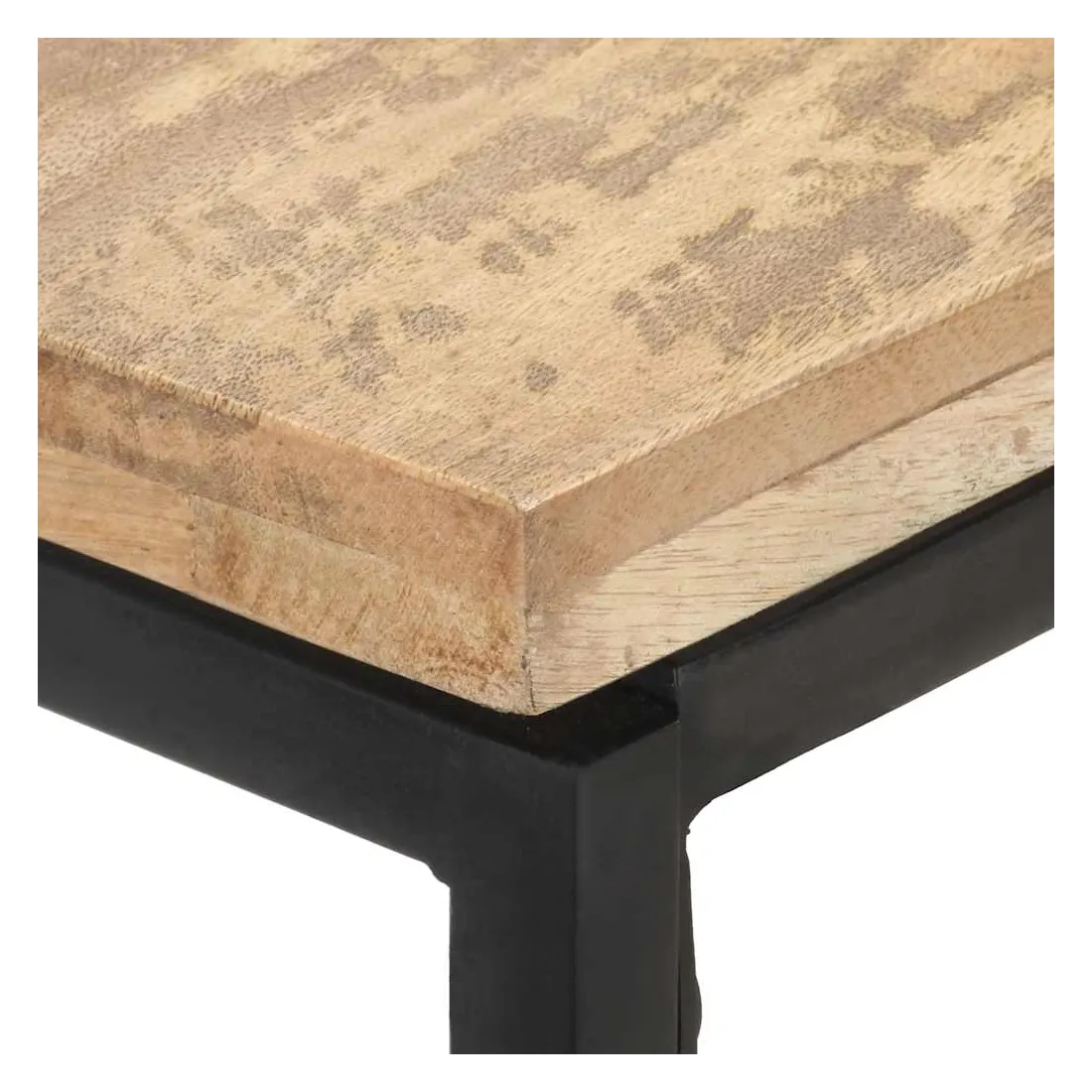 - Matériau : bois massif de manguier brut avec une finition naturelle, fer avec revêtement en poudre noire