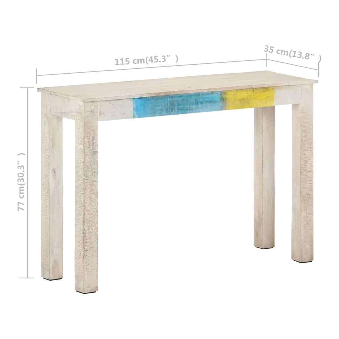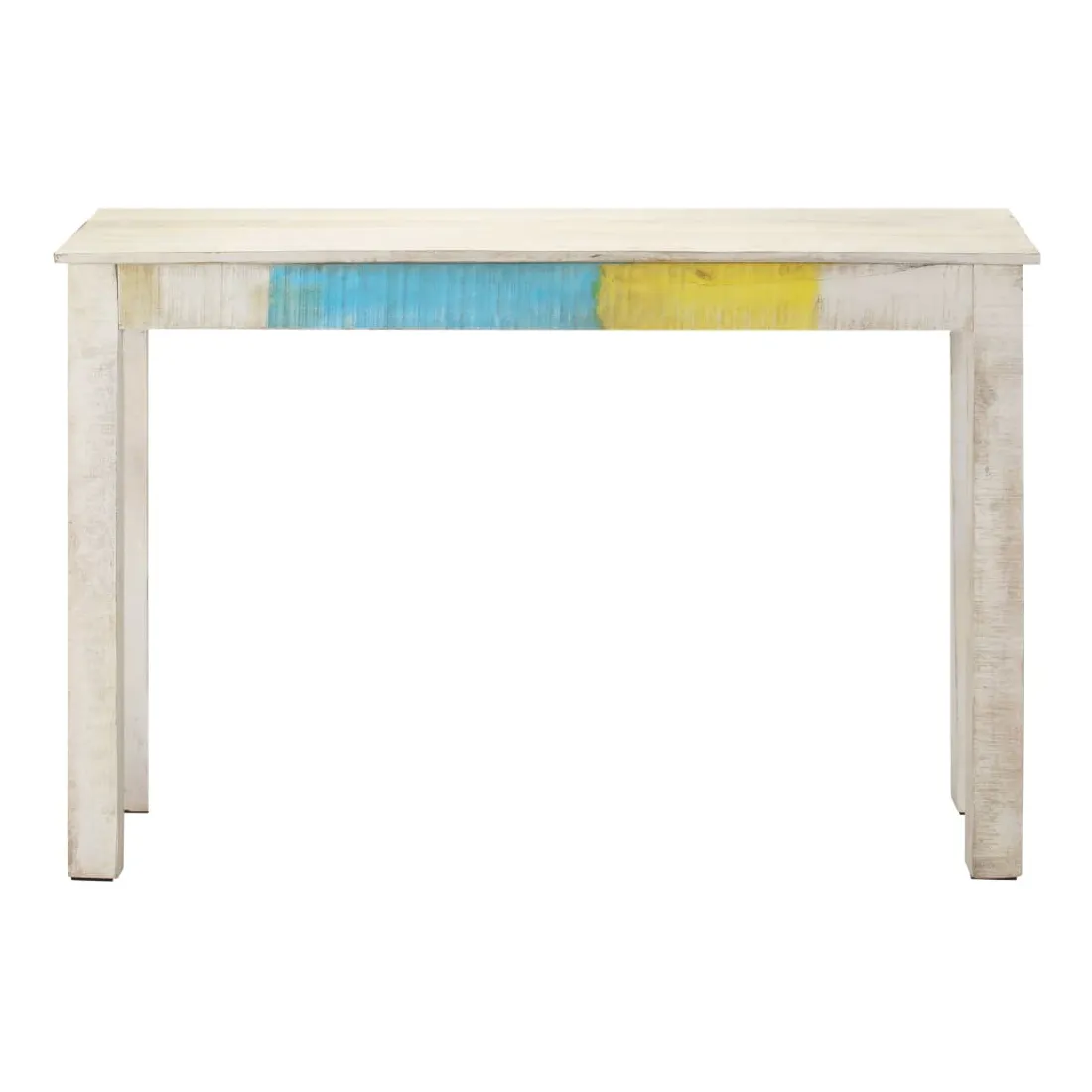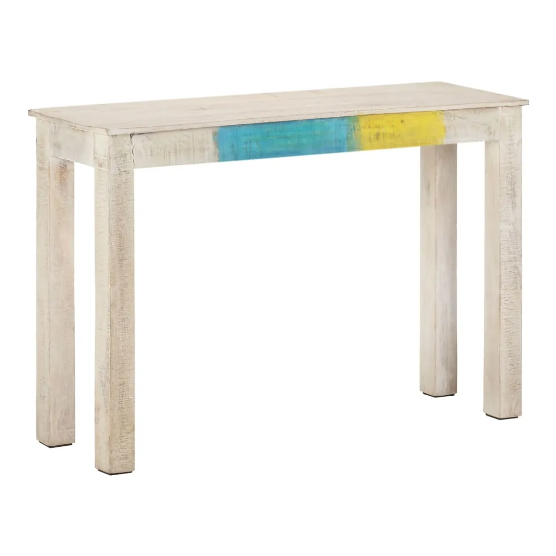 Si vous souhaitez ajouter une touche de charme rustique à votre décoration intérieure, cette table console en bois est un choix parfait ! Cette table de couloir est fabriquée en bois de manguier brut, un bois dur tropical ayant la force de soutenir le poids. Elle résiste également à l'usure du temps, ce qui la rend stable et durable. Le dessus de table en bois peut être utilisé pour placer des boissons, de la nourriture et d'autres éléments décoratifs. Remarque importante : les couleurs et les grains varient d'une pièce à l'autre, rendant chaque pièce unique ; la livraison est aléatoire.