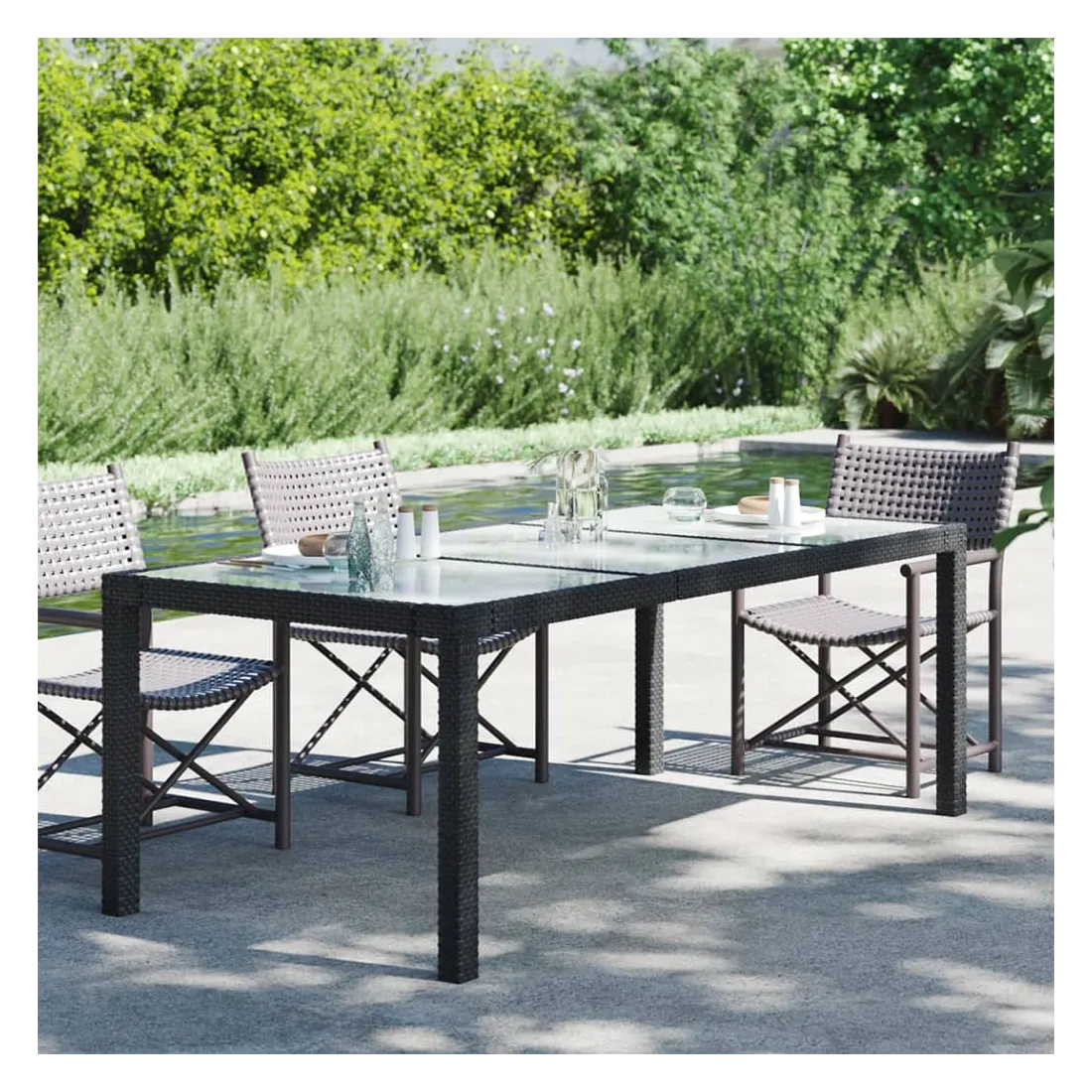 Combinant à la fois style et fonction, cette table de jardin en résine tressée sera certainement la pièce maîtresse de votre jardin, patio ou tout autre espace de vie. Dotée d'un cadre en acier enduit de poudre et enveloppé de résine tressée, cette table d'extérieur est solide et stable. De plus, le dessus de table est en verre trempé, ce qui le rend facile à nettoyer. Grâce à sa construction légère, la table de jardin est facile à déplacer. Remarque : afin de prolonger la durée de vie des meubles d'extérieur, nous vous recommandons de les protéger avec une housse imperméable.