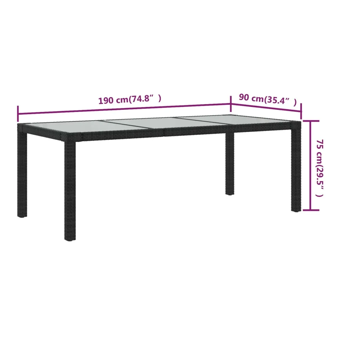 - Dimensions : 190 x 90 x 75 cm (L x l x H)