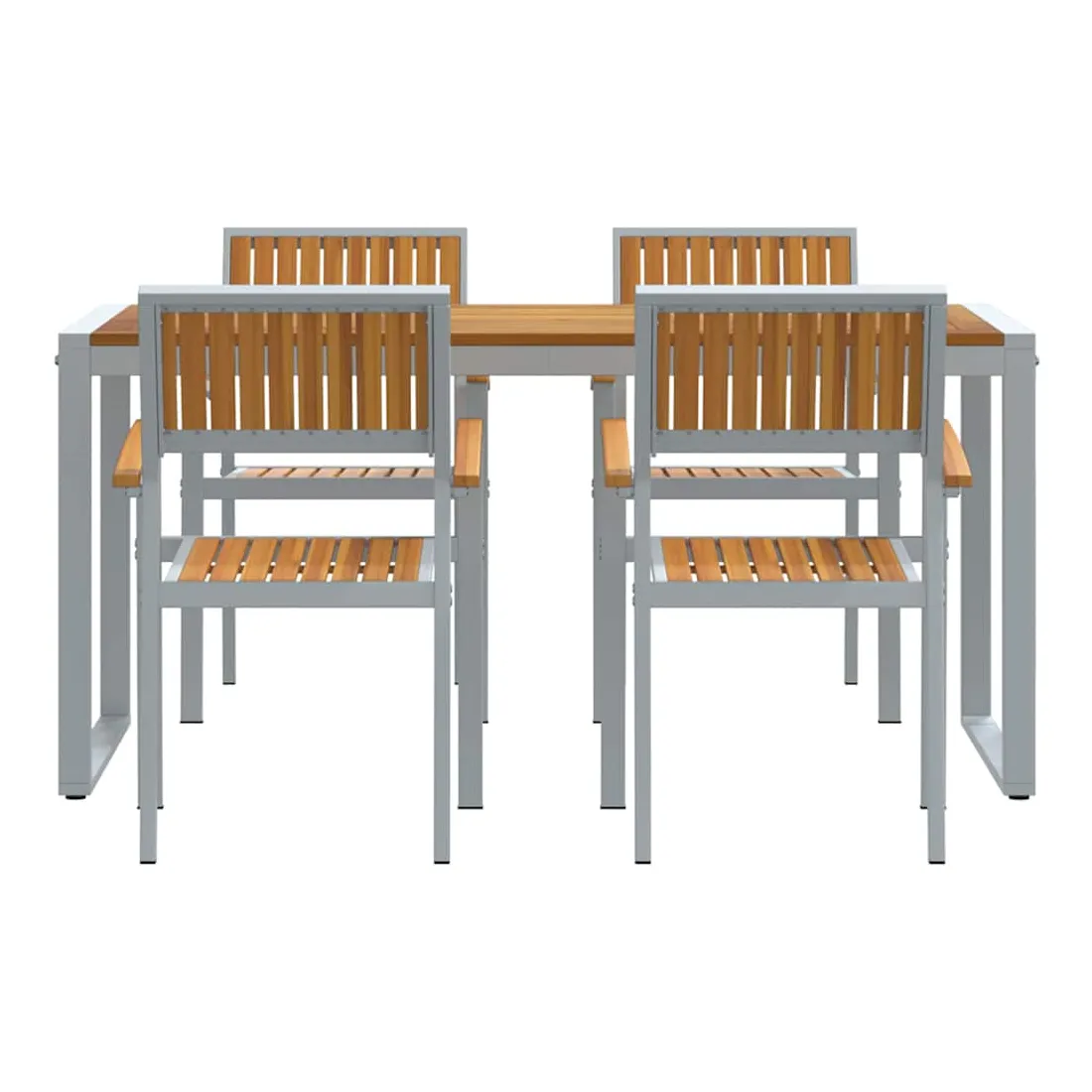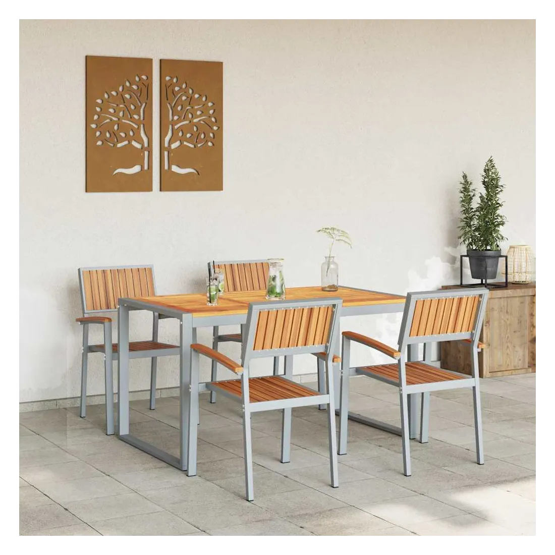 Cet ensemble de salle à manger de jardin moderne dépasse les attentes avec son design élégant et sa grande fonctionnalité, parfait pour les jardins et terrasses. Le mélange de bois d'acacia massif et d'acier incarne un style moderne, offrant un meuble chic pour des repas dehors, des soirées en famille ou des moments conviviaux. Conçu pour s'adapter à tous les jardins, il se marie aussi bien aux espaces verts que aux styles minimalistes, attirant ceux qui aiment les lignes simples et pratiques. Bois d'acacia massif : Ce matériau de choix donne du caractère et du charme à cet ensemble, tout en résistant bien aux intempéries, parfait pour manger dehors. Ses belles teintes s'associent facilement à tous les styles de jardin. Pieds en acier : Les pieds robustes assurent stabilité sur tous types de surfaces, que ce soit sur l'herbe ou le carrelage. Cela donne une allure épurée et moderne à l'ensemble, tout en restant solide même lors de grands repas ou barbecues. Forme rectangulaire : Pensée pour la convivialité, la forme rectangulaire facilite les conversations et les repas en groupe. Elle se fond bien dans des jardins ou terrasses structurés, maximisant l'espace sans renoncer au style. Composants inclus : Cet ensemble chic inclut des dossiers et accoudoirs en bois d'acacia massif. Ils offrent un bon soutien ergonomique pour un confort prolongé. Le dos bien fini montre une belle attention aux détails. Instructions d'entretien : Garder l'ensemble en bon état est simple : un coup de chiffon sec pour la poussière suffit. Protège-le des intempéries pour qu'il dure longtemps, et tu pourras en profiter pendant des années.