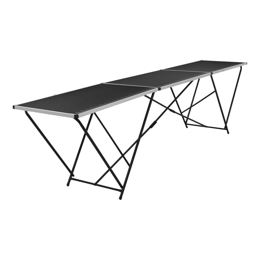 Cette table pliante à coller, dotée de marquages pratiques sur les côtés, est idéale pour un large éventail d'utilisations, telles que le collage de papiers peints, la décoration intérieure, les projets d'artisanat, la mesure de matériaux, etc. Cette table à tréteau est dotée d'un cadre en aluminium résistant et léger et d'un dessus de table en MDF noir facile à nettoyer, avec une capacité de charge maximale de 30 kg. La table est équipée de pieds tubulaires en acier en forme de W pour la résistance et la durabilité et peut facilement être pliée pour le stockage et le transport lorsqu'elle n'est pas utilisée. L'article est déjà assemblé ; aucun assemblage n'est requis.