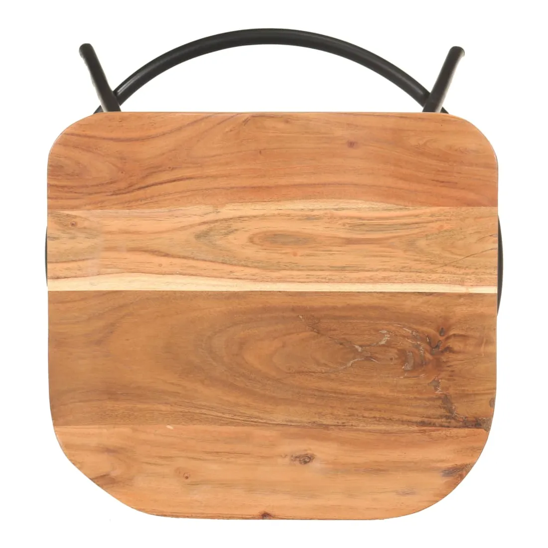 - Matériau : bois d'acacia massif avec finition naturelle, fer enduit de poudre noire