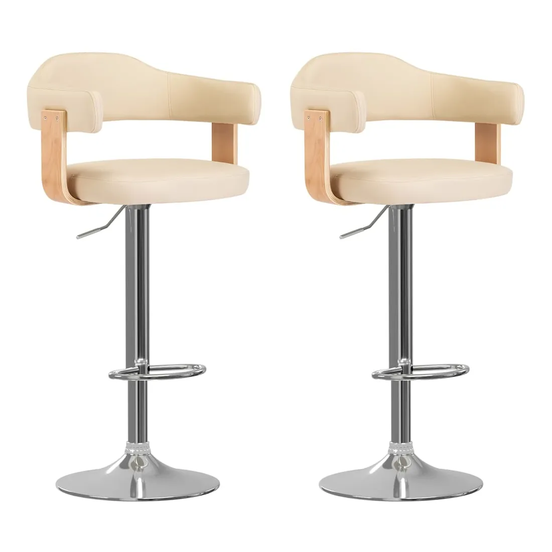 Avec un design soigné mais intemporel, cet ensemble de tabourets de bar vous apportera sûrement le plus grand confort d'assise. Ces chaises de bar sont recouvertes de similicuir et confortablement rembourrées. Le cadre en bois courbé et en fer offre une robustesse et une stabilité élevées, et ajoute également à la beauté et au style uniques. Le repose-pied intégré et la conception ergonomique offrent une expérience d'assise confortable. Grâce au mécanisme de levage à gaz, cet ensemble de deux tabourets de bar pivotants peut être réglé en hauteur et constitue un complément parfait à tout bar ou salle à manger fonctionnels. Ils peuvent également pivoter à 360 degrés pour une grande flexibilité.