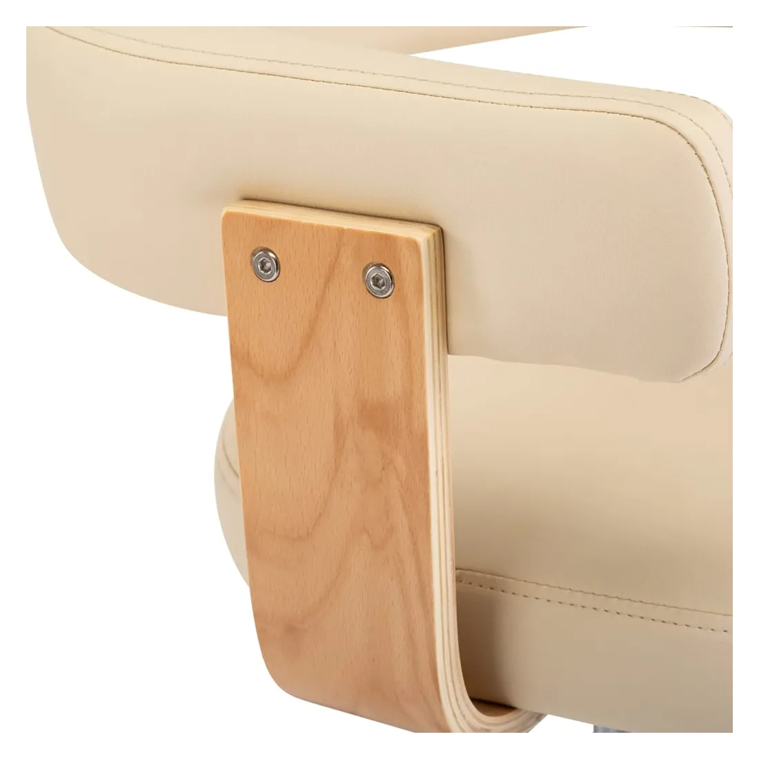- Matériau du cadre : noyer courbé, fer chromé, similicuir (55 % polyuréthane, 45 % coton)