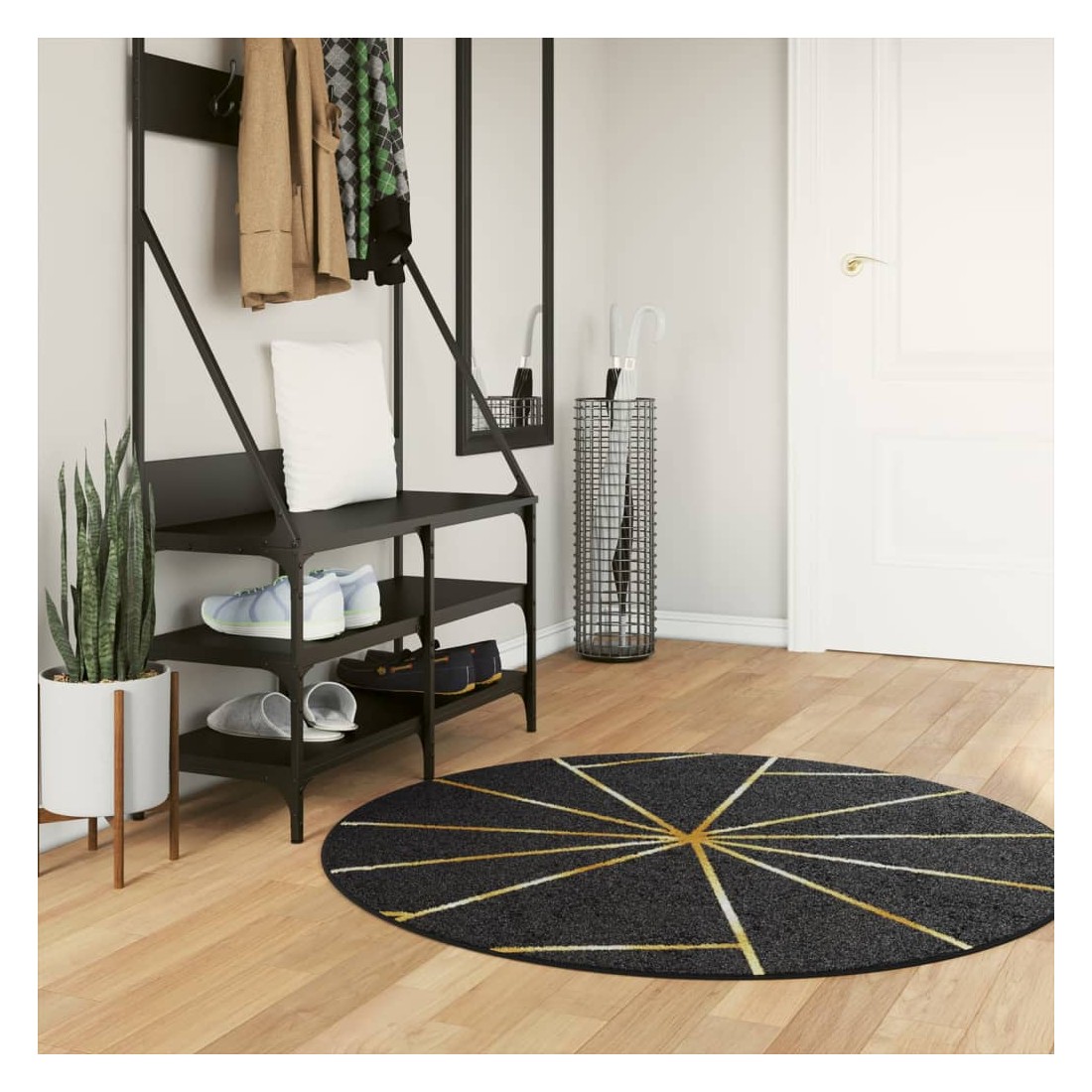 Tapis lavable noir et doré Ø 120 cm antidérapant