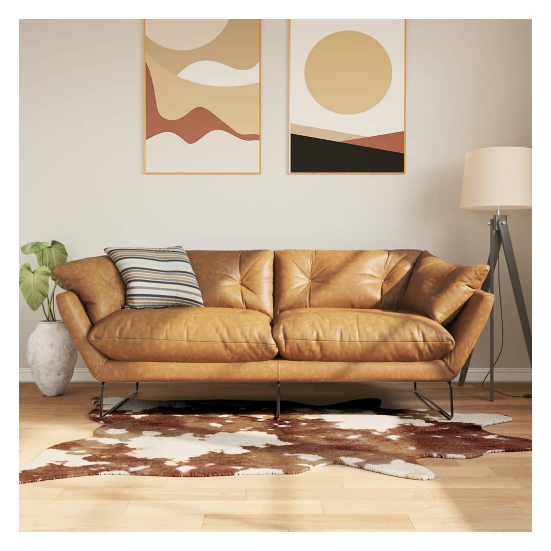 Tapis marron et blanc motif vache lavable antidérapant