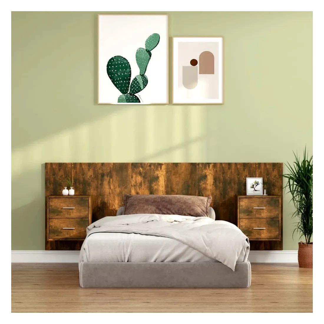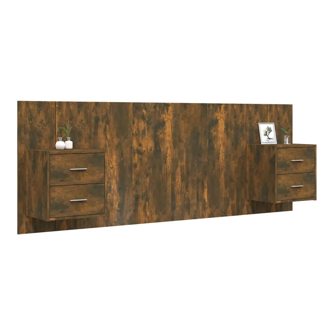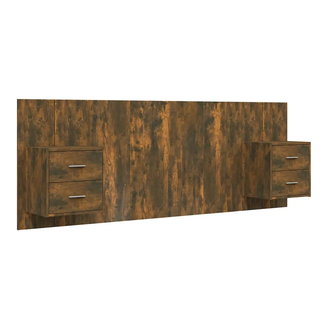 Tête de lit avec armoires Chêne fumé Bois d'ingénierie
