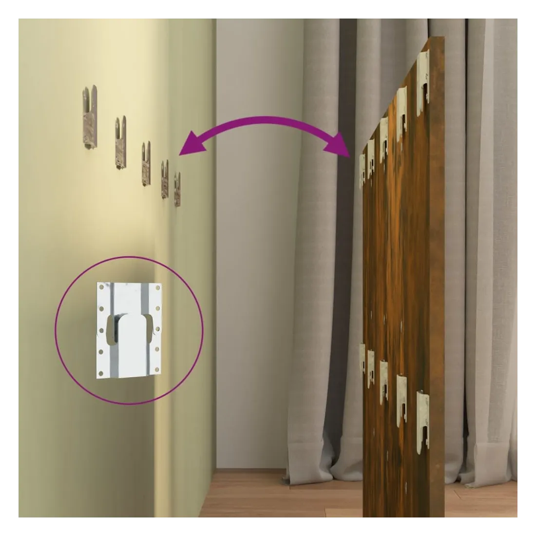 La tête de lit robuste avec armoires, au design classique, donne à votre cadre de lit un aspect complet et convient à toute chambre à coucher. Matériau robuste : le bois d'ingénierie est d'une qualité exceptionnelle avec une surface lisse et présente également résistance, stabilité et résistance à l'humidité.Design mural : les tables de chevet flottantes et la tête de lit peuvent être fixées au mur. De cette façon, vous pouvez maximiser votre espace au sol et garder la zone propre.Espace de rangement : l'unité de chevet dispose d'un espace de rangement spacieux qui vous permet de garder vos affaires organisées. ATTENTION :Les vis et les chevilles pour l'intérieur du mur ne sont pas incluses. Recherchez et utilisez des vis et des chevilles adaptées à vos murs. Si vous n'êtes pas sûr, demandez conseil à un professionnel. Lisez et suivez attentivement chaque étape des instructions.