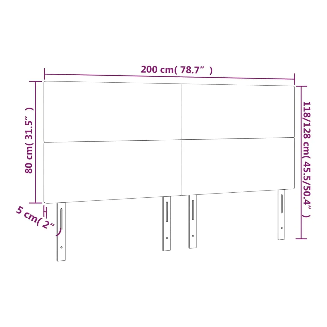 • Dimensions hors tout : 200 x 5 x 118/128 cm (l x P x H)