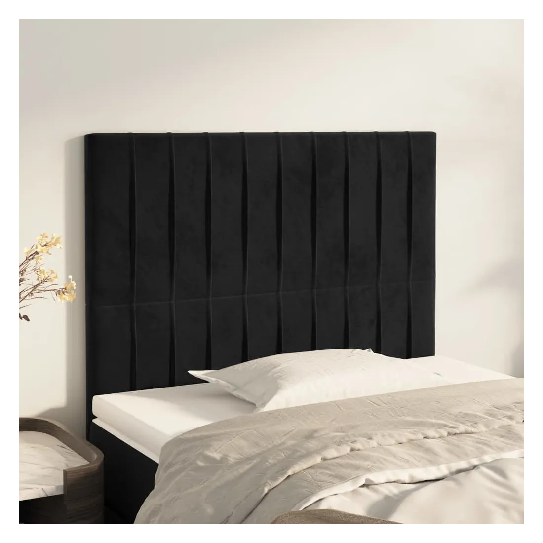 Cette tête de lit classique au design élégant complètera parfaitement votre cadre de lit et conviendra à toutes les chambres. Velours doux : Le velours est un tissu doux et luxueux qui se distingue par ses fibres denses et uniformément coupées et lisses. Le velours offre un toucher doux et agréable.Pieds robustes et stables : Les pieds en bois assurent robustesse et stabilité.Hauteur réglable : La tête de lit est réglable en hauteur selon vos préférences.Excellent soutien : La tête de lit vous offre un excellent soutien dorsal lorsque vous êtes assis dans votre lit pour lire ou regarder la télévision. Remarque :La livraison comprend uniquement la tête de lit. Le cadre de lit et le matelas ne sont pas inclus. Vous pouvez consulter notre boutique pour les cadres et matelas assortis.Chaque produit est livré avec un manuel de montage dans la boîte pour un assemblage facile.