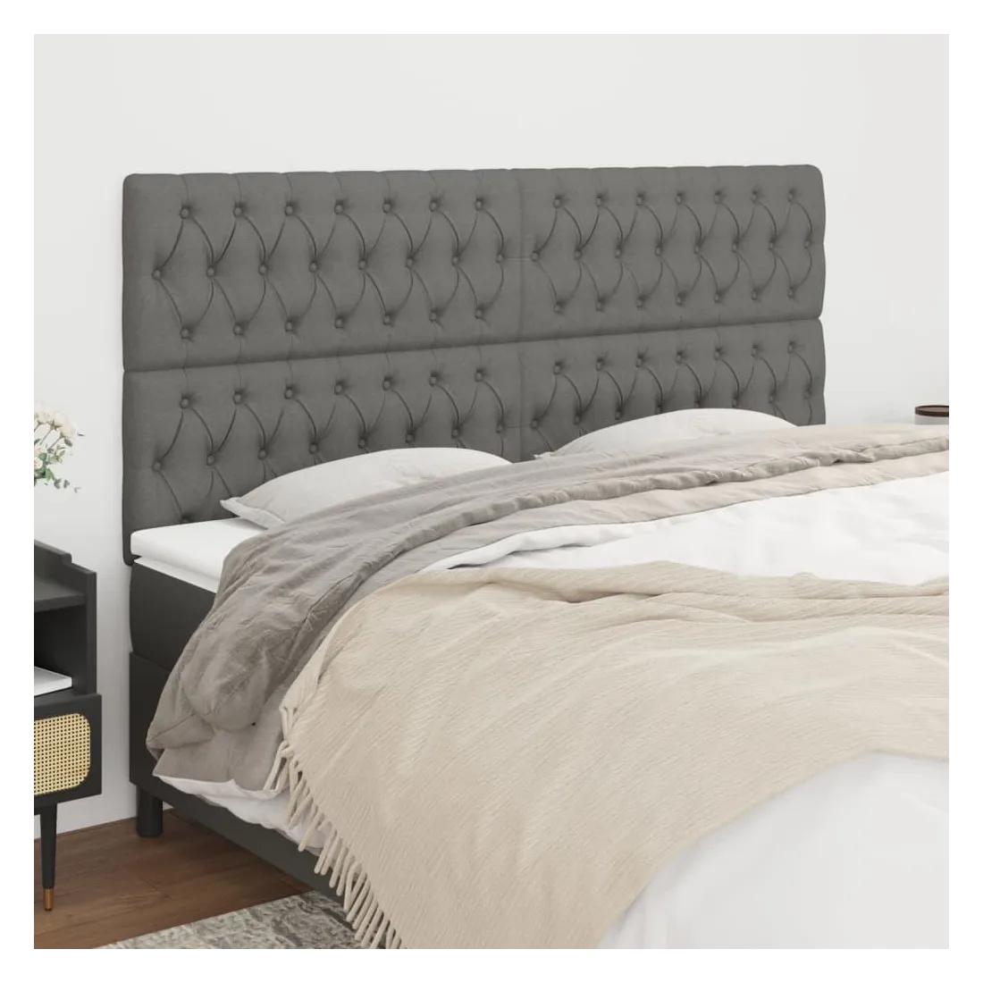 Cette tête de lit classique au design élégant complète parfaitement le cadre de votre lit et s'intègre parfaitement à n'importe quelle chambre. Tissu résistant : Le tissu présente un aspect simple et épuré, respirant et durable.Pieds robustes et stables : Les pieds en bois assurent robustesse et stabilité.Hauteur réglable : La tête de lit est réglable en hauteur selon vos préférences.Excellent soutien : La tête de lit offre un excellent soutien dorsal lorsque vous êtes assis dans votre lit pour lire ou regarder la télévision. Remarque :La livraison comprend uniquement la tête de lit. Le cadre de lit et le matelas ne sont pas inclus. Vous pouvez consulter notre boutique pour trouver les cadres et matelas assortis.Chaque produit est livré avec un manuel d'assemblage pour un assemblage facile.