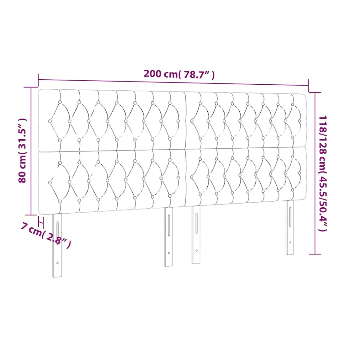 - Dimensions hors tout : 200 x 7 x 118/128 cm (l x P x H)