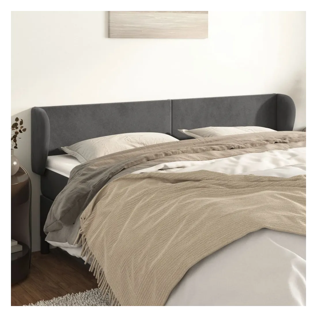 Tête de lit avec oreilles Gris foncé 183x23x78/88 cm Velours
