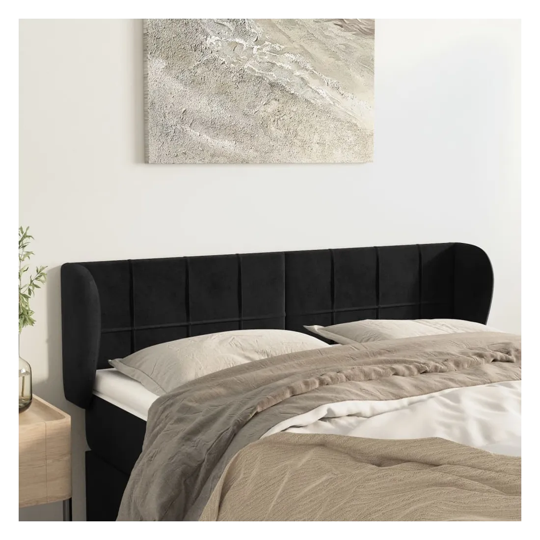 Tête de lit avec oreilles Noir 147x23x78/88 cm Velours