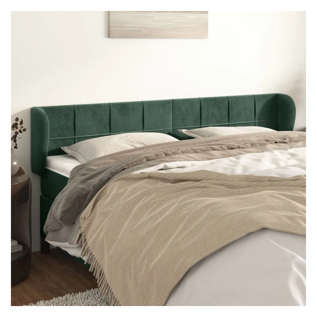 Cette tête de lit avec oreilles classique au design élégant donne à votre cadre de lit un aspect complet et convient à toute chambre à coucher. Velours doux : le velours est un tissu doux et luxueux qui se reconnaît à son tas dense de fibres uniformément coupées qui ont une touche lisse. Le tissu en velours présente un toucher doux distinctif, ce qui le rend confortable au toucher.Pieds robustes et stables : les pieds en bois assurent la robustesse et la stabilité.Hauteur réglable : la tête de lit est réglable en hauteur selon vos préférences.Excellent soutien : la tête de lit vous offre un excellent soutien du dos lorsque vous êtes assis dans votre lit pour lire ou regarder la télévision. Remarque :La livraison comprend uniquement la tête de lit. Le cadre de lit et le matelas ne sont pas inclus. Vous pouvez consulter notre boutique pour les cadres et matelas assortis.Chaque produit est livré avec un manuel de montage dans la boîte pour un montage facile.