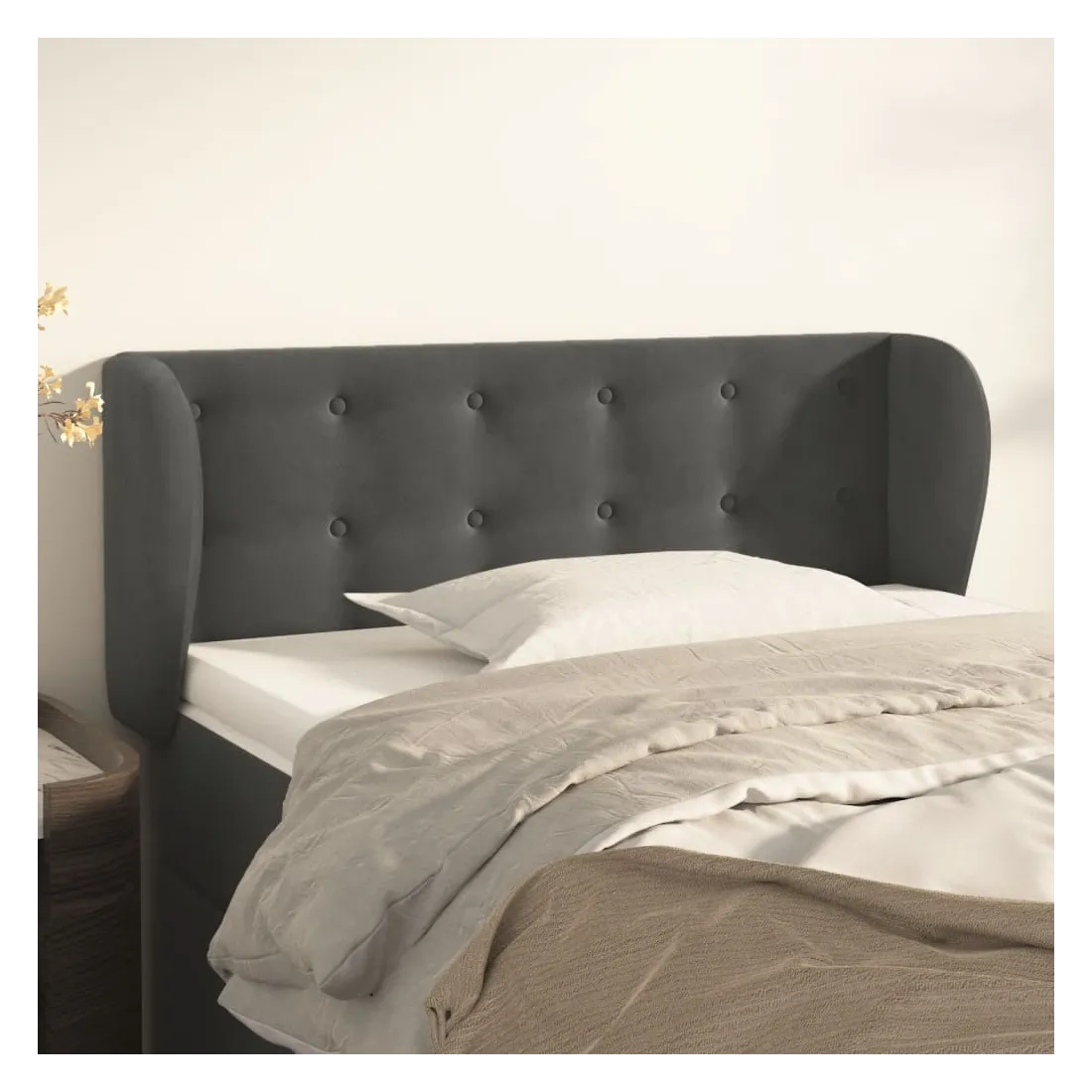 Cette tête de lit avec oreilles classique au design élégant donne à votre cadre de lit un aspect complet et convient à toute chambre à coucher. Velours doux : le velours est un tissu doux et luxueux qui se reconnaît à son tas dense de fibres uniformément coupées qui ont une touche lisse. Le tissu en velours présente un toucher doux distinctif, ce qui le rend confortable au toucher.Pieds robustes et stables : les pieds en bois assurent la robustesse et la stabilité.Hauteur réglable : la tête de lit est réglable en hauteur selon vos préférences.Excellent soutien : la tête de lit vous offre un excellent soutien du dos lorsque vous êtes assis dans votre lit pour lire ou regarder la télévision. Remarque :La livraison comprend uniquement la tête de lit. Le cadre de lit et le matelas ne sont pas inclus. Vous pouvez consulter notre boutique pour les cadres et matelas assortis.Chaque produit est livré avec un manuel de montage dans la boîte pour un montage facile.