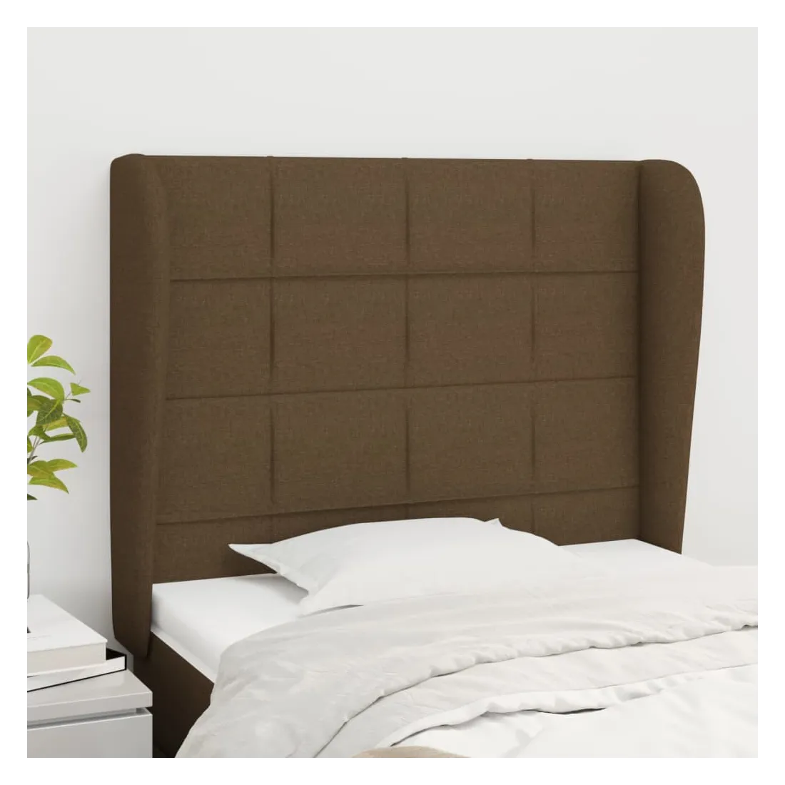 Tête de lit avec oreilles Marron foncé 93x23x118/128 cm Tissu
