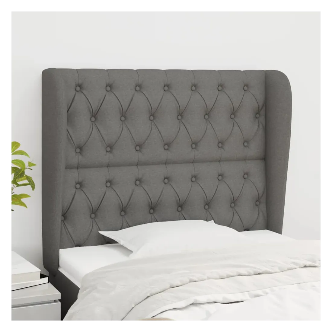 Tête de lit avec oreilles Gris foncé 93x23x118/128 cm Tissu