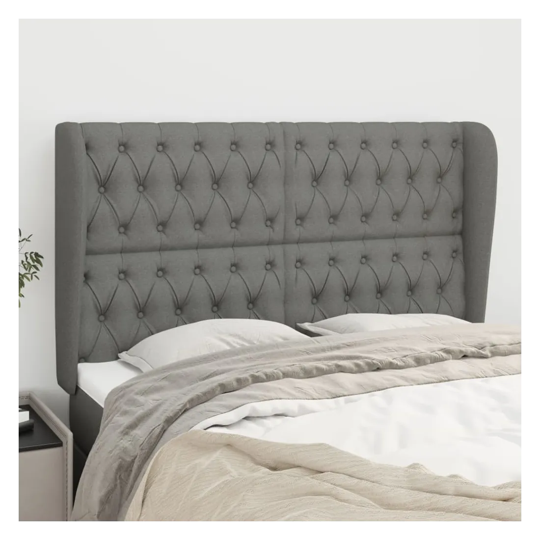 Cette tête de lit avec oreilles classique au design élégant donne à votre cadre de lit un aspect complet et convient à toute chambre à coucher. Tissu durable : le tissu présente un aspect simple et épuré, et il est respirant et durable.Pieds robustes et stables : les pieds en bois assurent la robustesse et la stabilité.Hauteur réglable : la tête de lit est réglable en hauteur selon vos préférences.Excellent soutien : la tête de lit vous offre un excellent soutien du dos lorsque vous êtes assis dans votre lit pour lire ou regarder la télévision. Remarque :La livraison comprend uniquement la tête de lit. Le cadre de lit et le matelas ne sont pas inclus. Vous pouvez consulter notre boutique pour les cadres et matelas assortis.Chaque produit est livré avec un manuel de montage dans la boîte pour un montage facile.