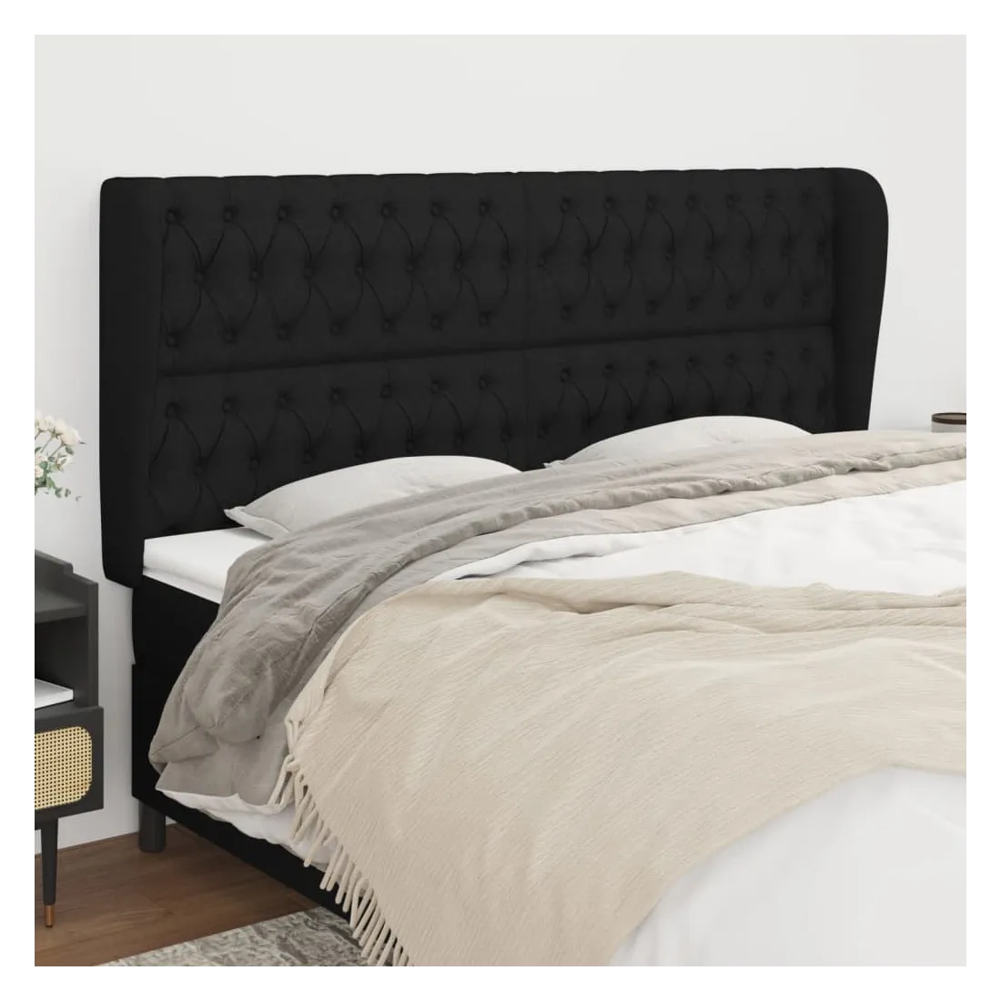 Tête de lit avec oreilles Noir 203x23x118/128 cm Tissu