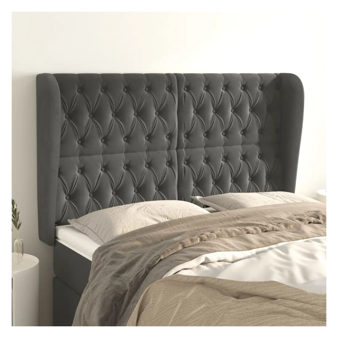 Tête de lit avec oreilles Gris foncé 163x23x118/128 cm Velours