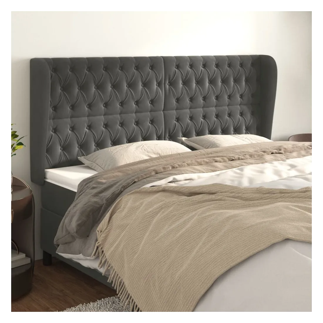 Tête de lit avec oreilles Gris foncé 183x23x118/128 cm Velours