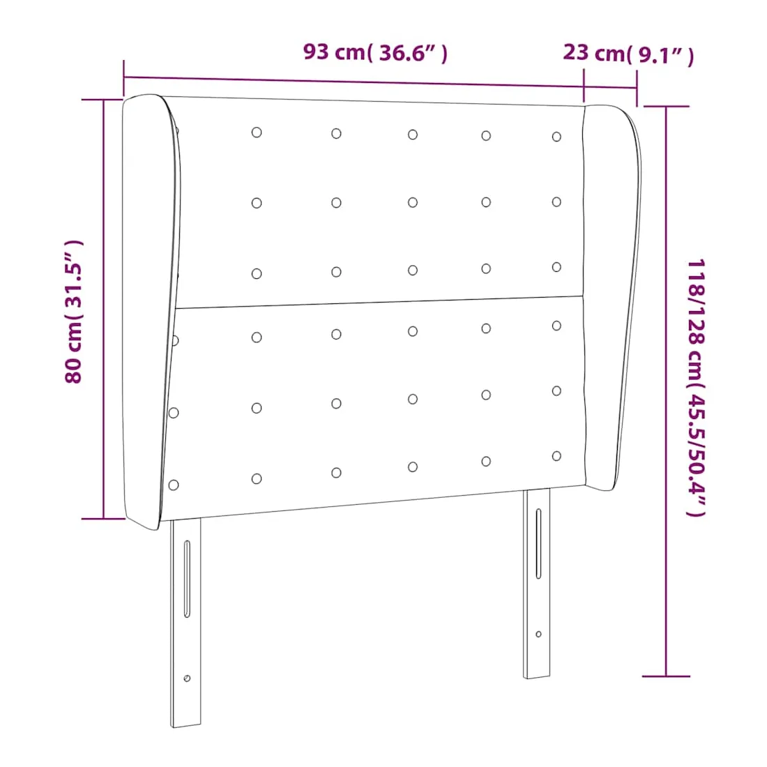 Cette tête de lit avec oreilles classique au design élégant donne à votre cadre de lit un aspect complet et convient à toute chambre à coucher. Velours doux : le velours est un tissu doux et luxueux qui se reconnaît à son tas dense de fibres uniformément coupées qui ont une touche lisse. Le tissu en velours présente un toucher doux distinctif, ce qui le rend confortable au toucher. Pieds robustes et stables : les pieds en bois assurent la robustesse et la stabilité. Hauteur réglable : la tête de lit est réglable en hauteur selon vos préférences. Excellent soutien : la tête de lit vous offre un excellent soutien du dos lorsque vous êtes assis dans votre lit pour lire ou regarder la télévision. Remarque : La livraison comprend uniquement la tête de lit. Le cadre de lit et le matelas ne s