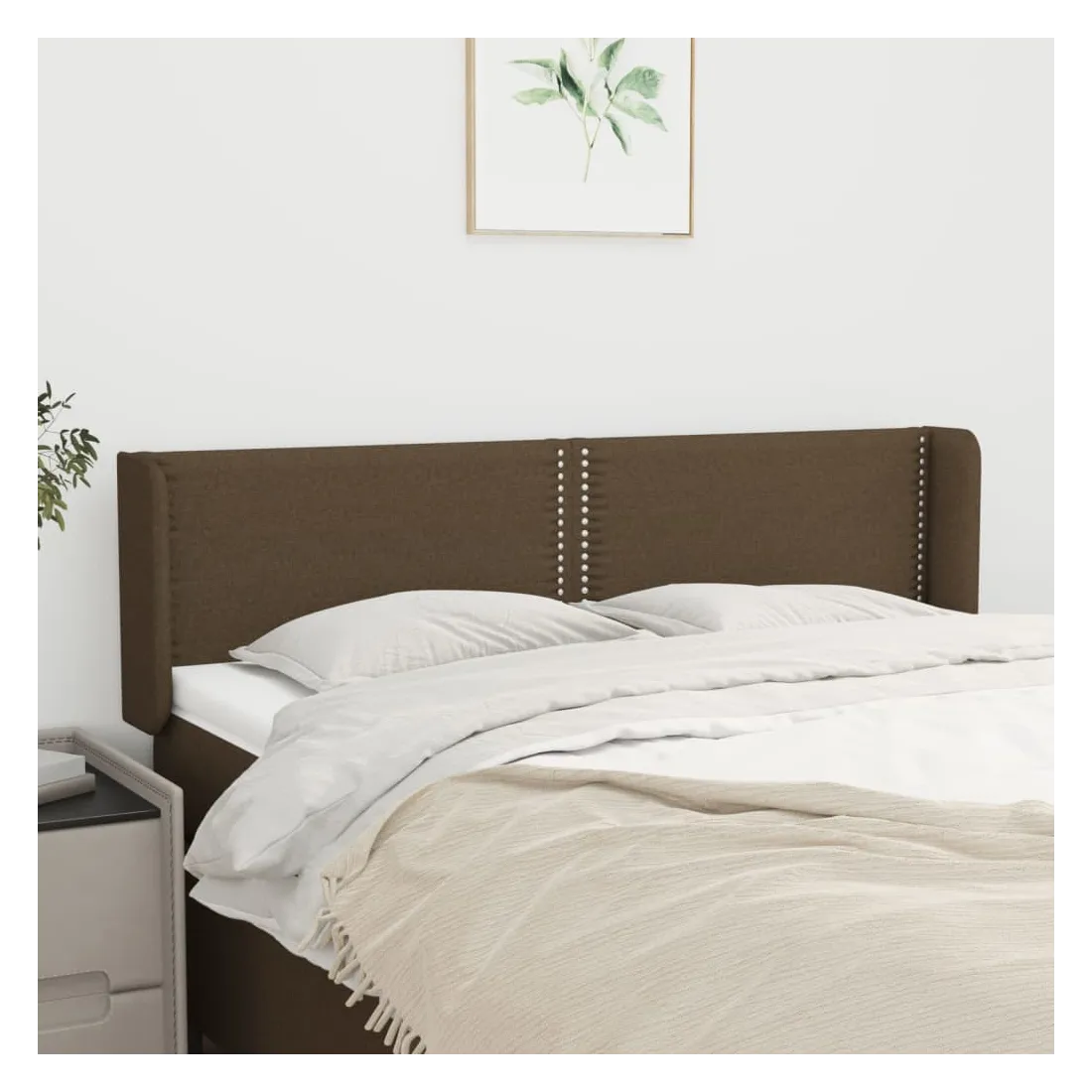 Tête de lit avec oreilles Marron Foncé 147x16x78/88 cm Tissu