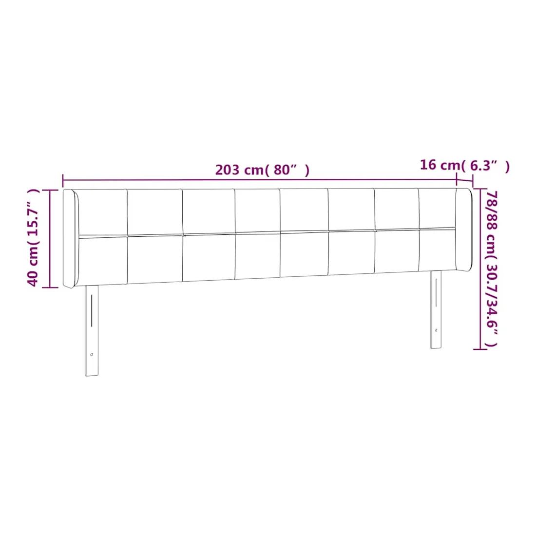 203 x 16 x 78/88 cm