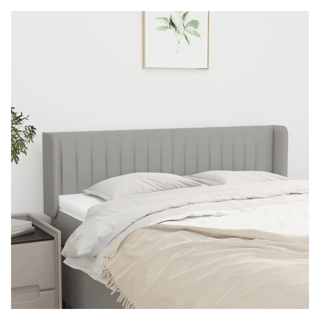 Cette tête de lit avec oreilles classique au design élégant donne à votre cadre de lit un aspect complet et convient à toute chambre à coucher. Tissu durable : le tissu présente un aspect simple et épuré, et il est respirant et durable.Pieds robustes et stables : les pieds en bois assurent la robustesse et la stabilité.Hauteur réglable : la tête de lit est réglable en hauteur selon vos préférences.Excellent soutien : la tête de lit vous offre un excellent soutien du dos lorsque vous êtes assis dans votre lit pour lire ou regarder la télévision. Remarque :La livraison comprend uniquement la tête de lit. Le cadre de lit et le matelas ne sont pas inclus. Vous pouvez consulter notre boutique pour les cadres et matelas assortis.Chaque produit est livré avec un manuel de montage dans la boîte pour un montage facile.