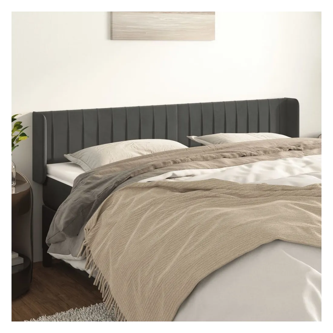 Tête de lit avec oreilles Gris foncé 203x16x78/88 cm Velours