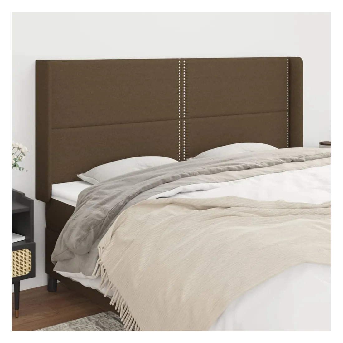 Tête de lit avec oreilles Marron foncé 203x16x118/128 cm Tissu
